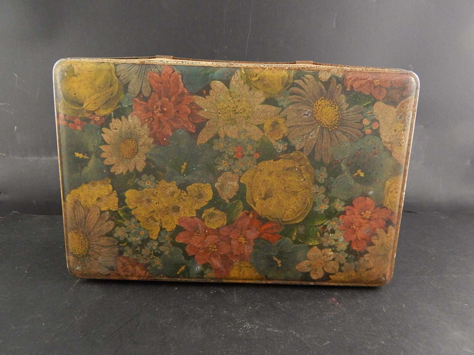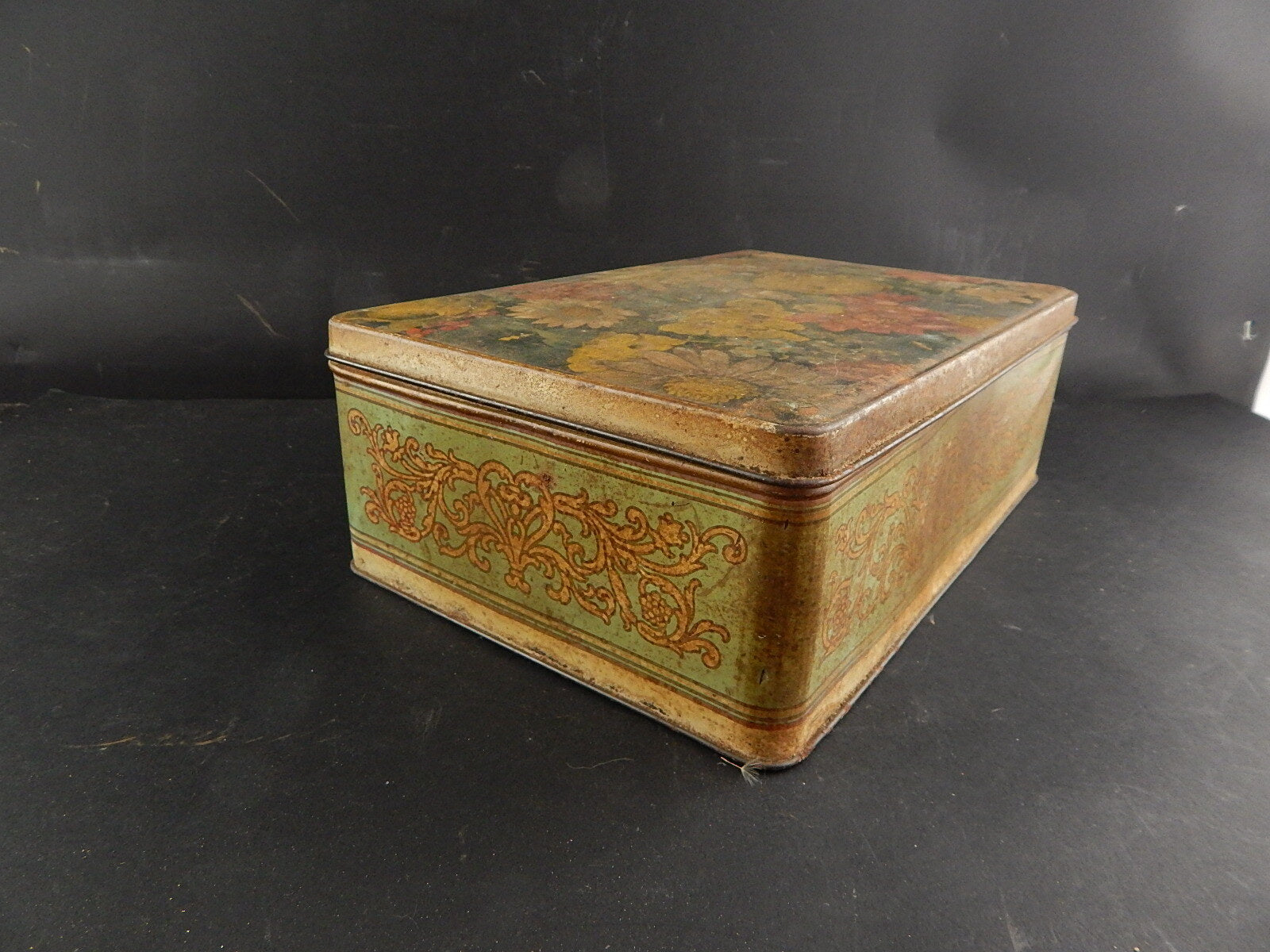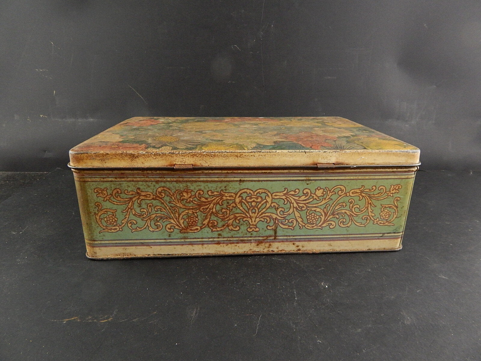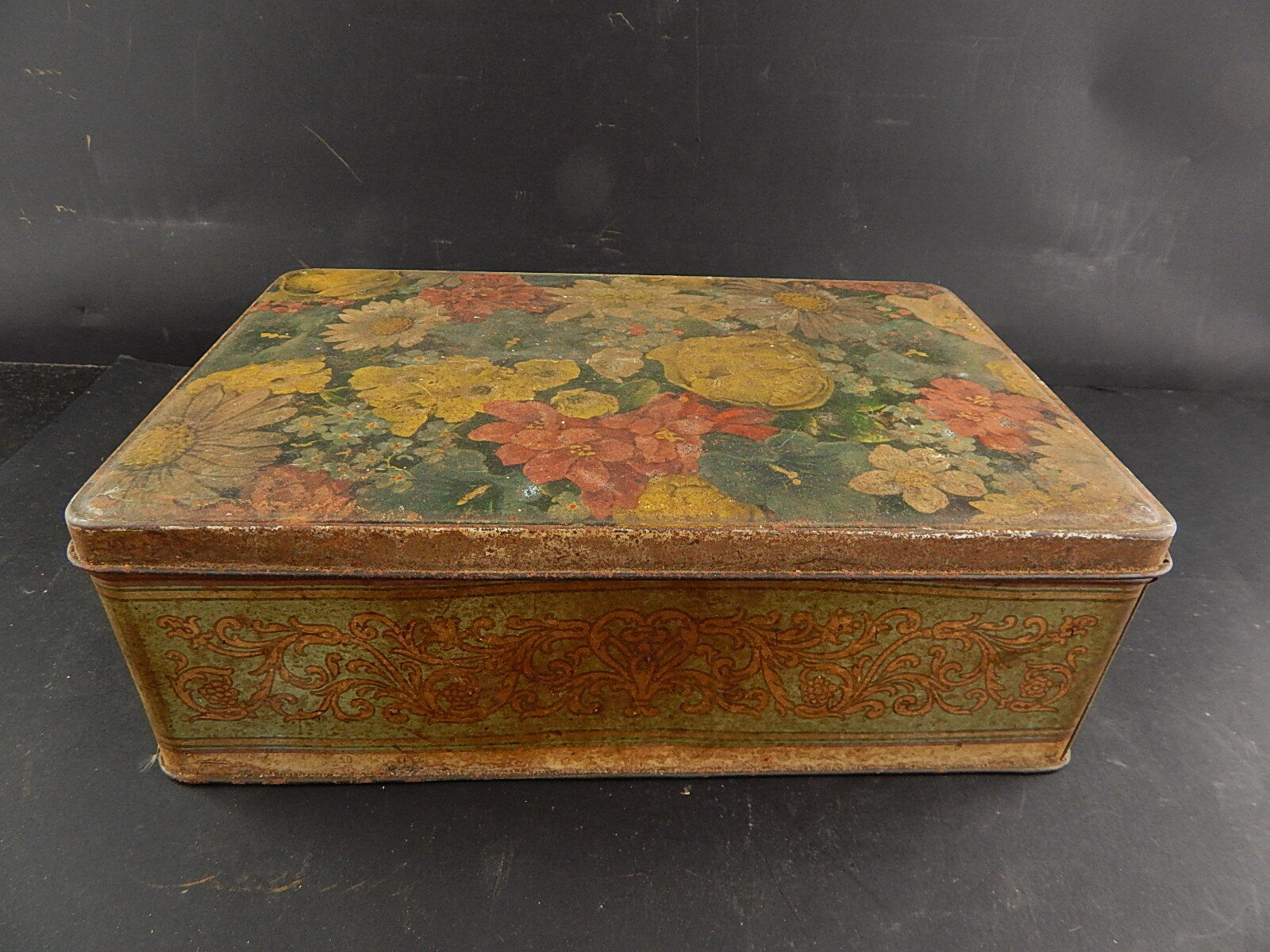 COLLEZIONE ANTICA ORIGINALE SCATOLA DI LATTA STAMPA FLOREALE E ARABESCHI