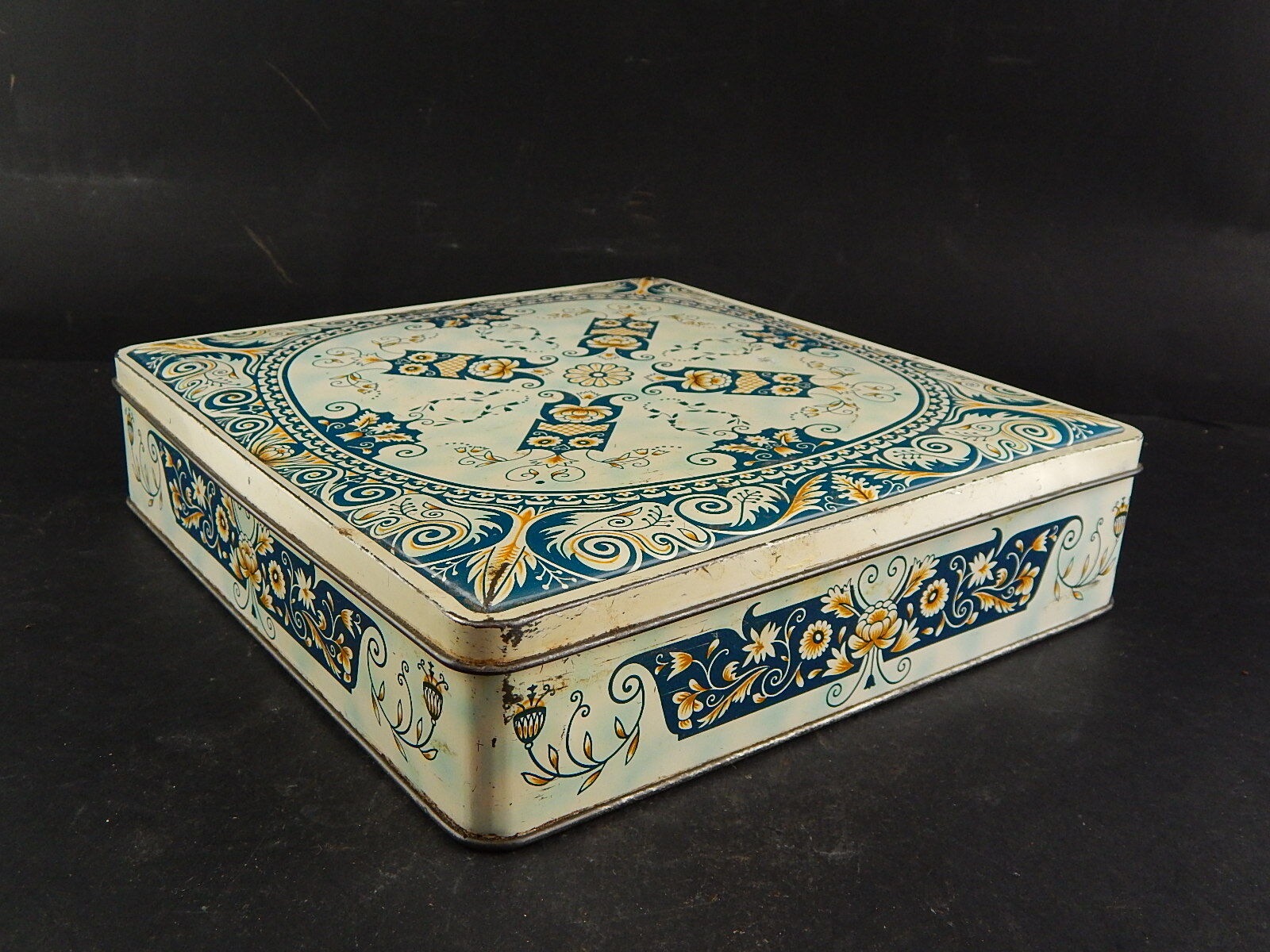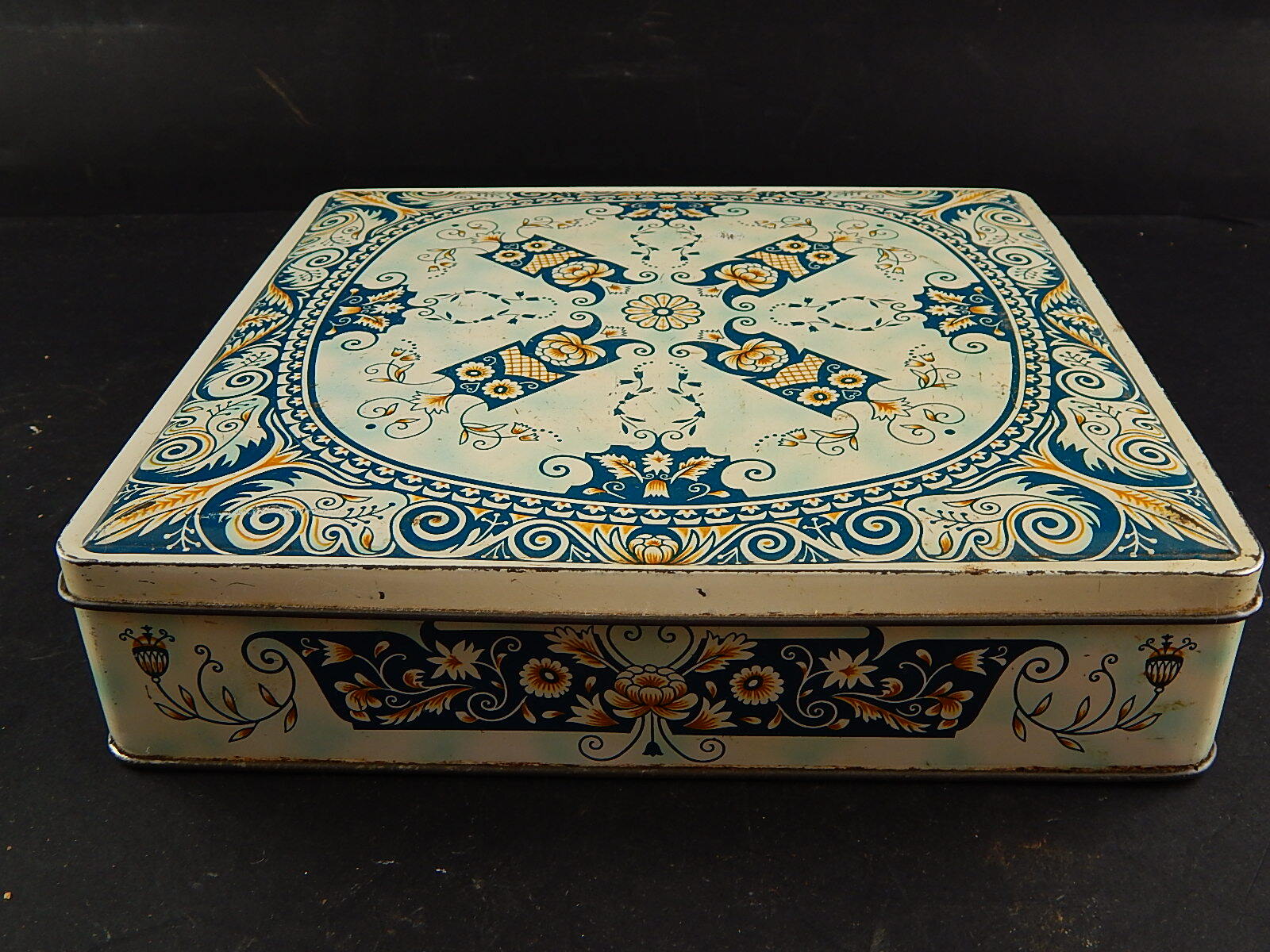 COLLEZIONE ANTICA ORIGINALE SCATOLA DI LATTA STAMPATA DECORI ARABESCHI ROUEN