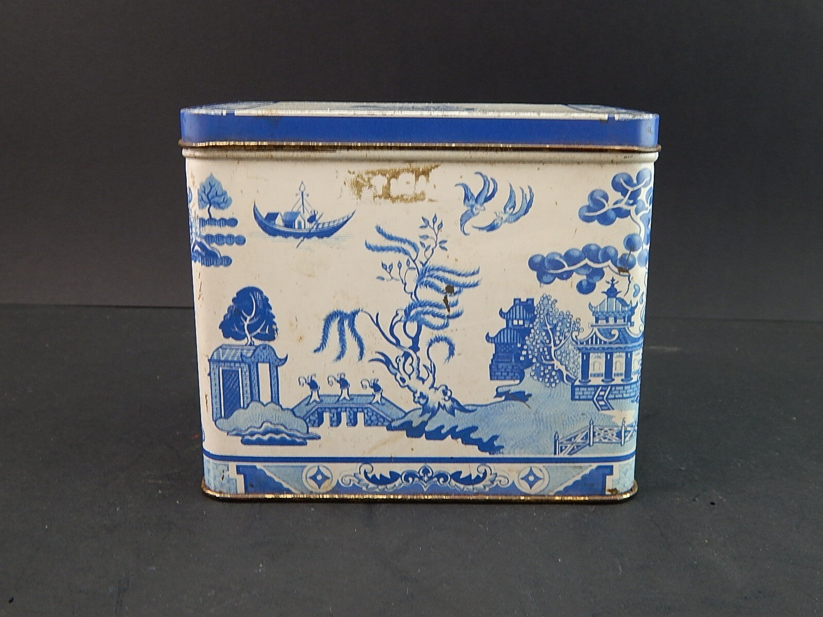 COLLEZIONE ANTICA ORIGINALE SCATOLA LATTA TE' DECORO WILLOW BIANCA BLU