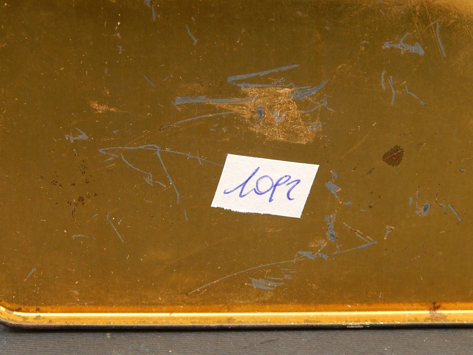 La scatola di latta misura 12,5 x 8 cm e 10,5 cm di altezza. Per le condizioni vedere le foto