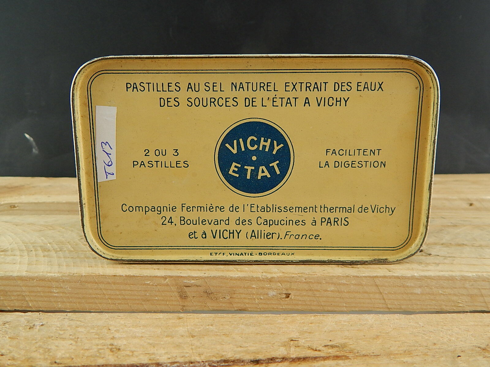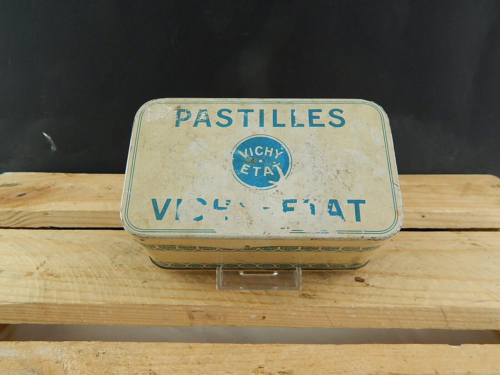 COLLEZIONE ANTICA RARA SCATOLA DI LATTA PUBBLICITARIA PASTILLES VICHY ETAT