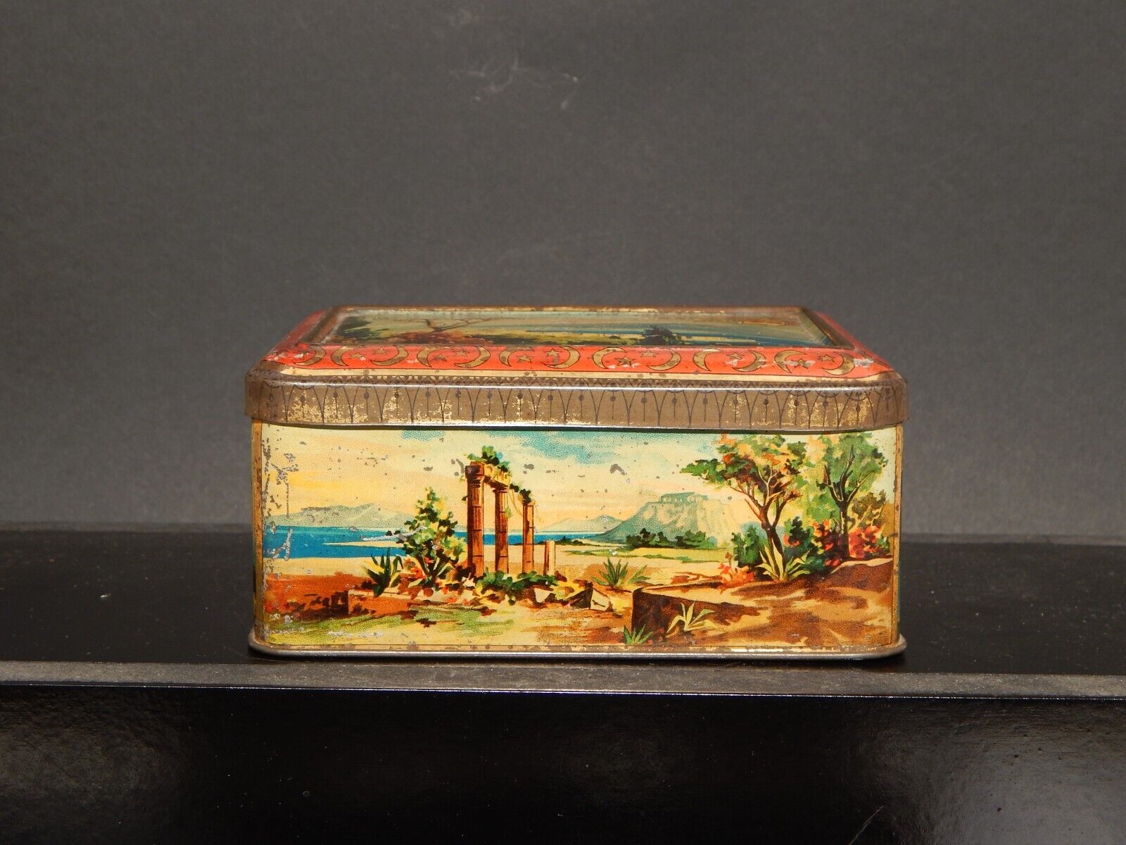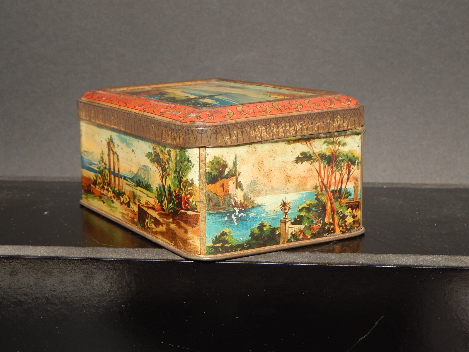 COLLEZIONE ANTICA SCATOLA COFANETTO DI LATTA OLIBET BISCUITS GOLFO DI NAPOLI