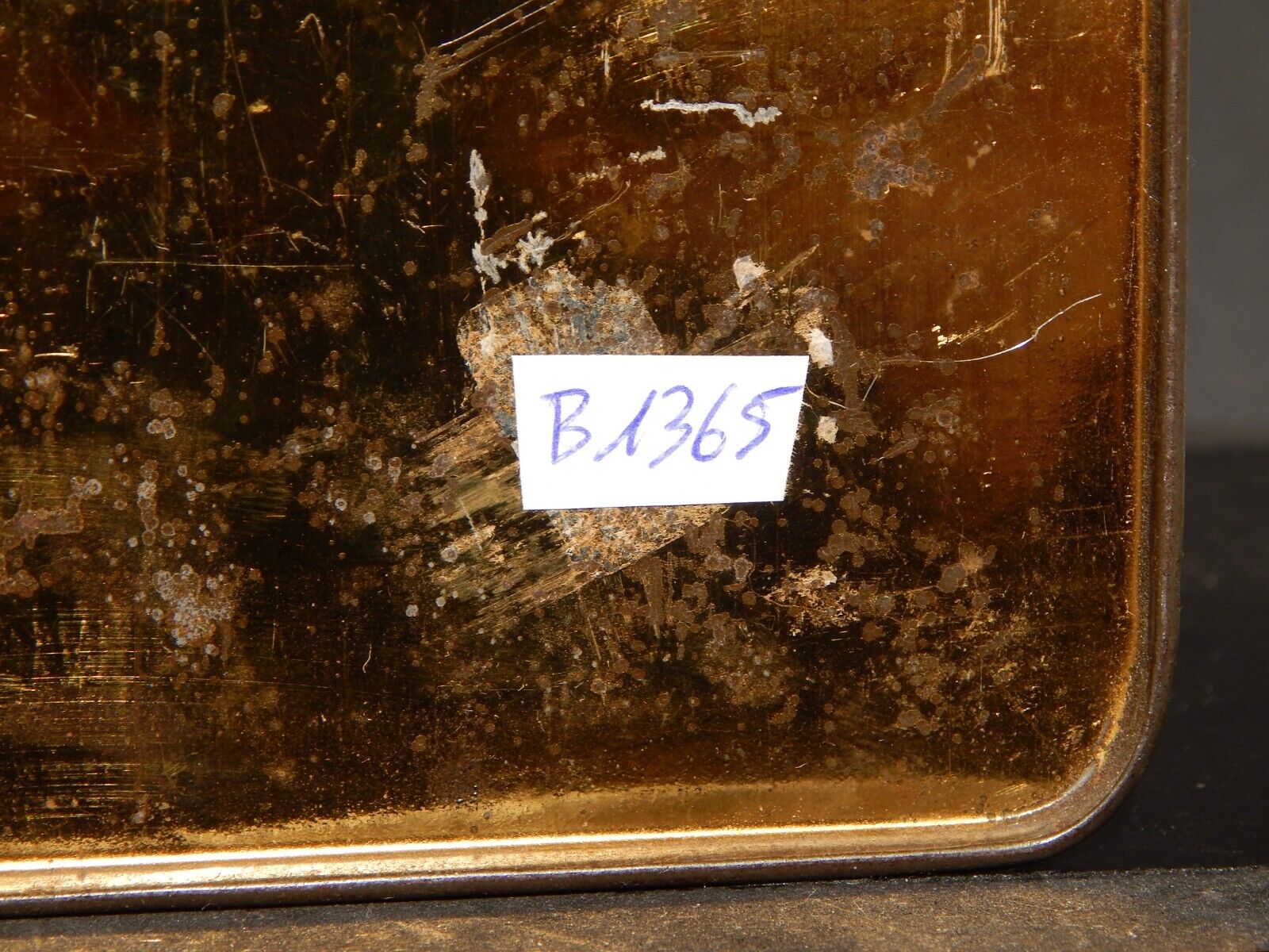 In questa inserzione viene presentata un'antica scatola di latta che misura 15 x 11 cm e 7,5 cm di altezza
