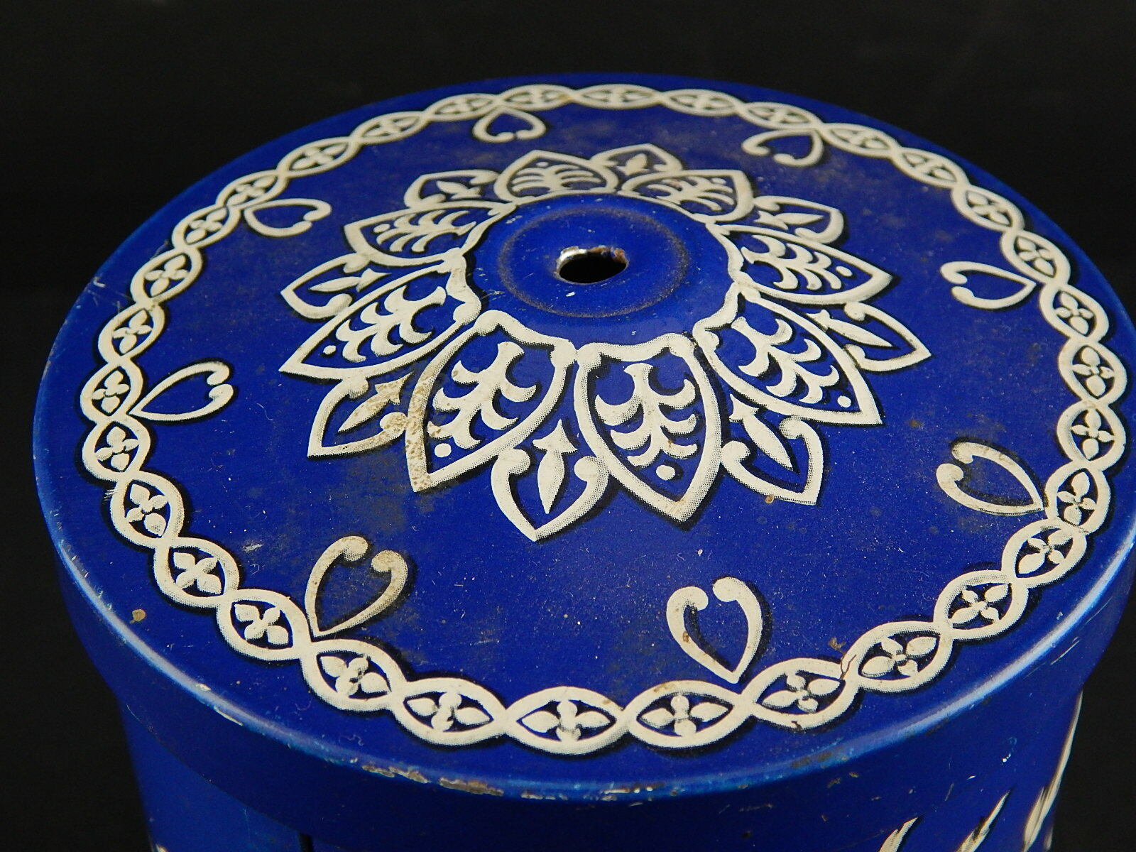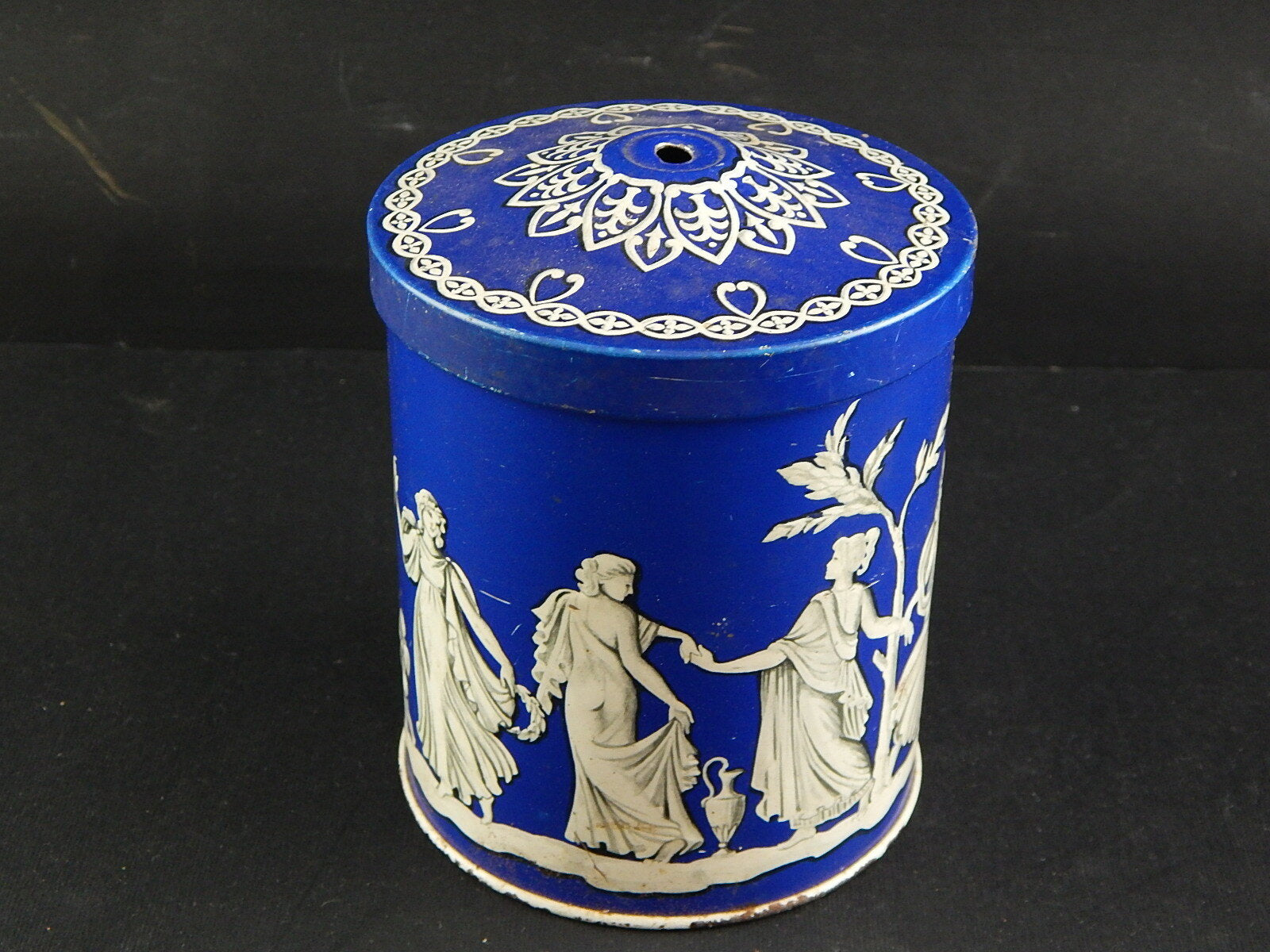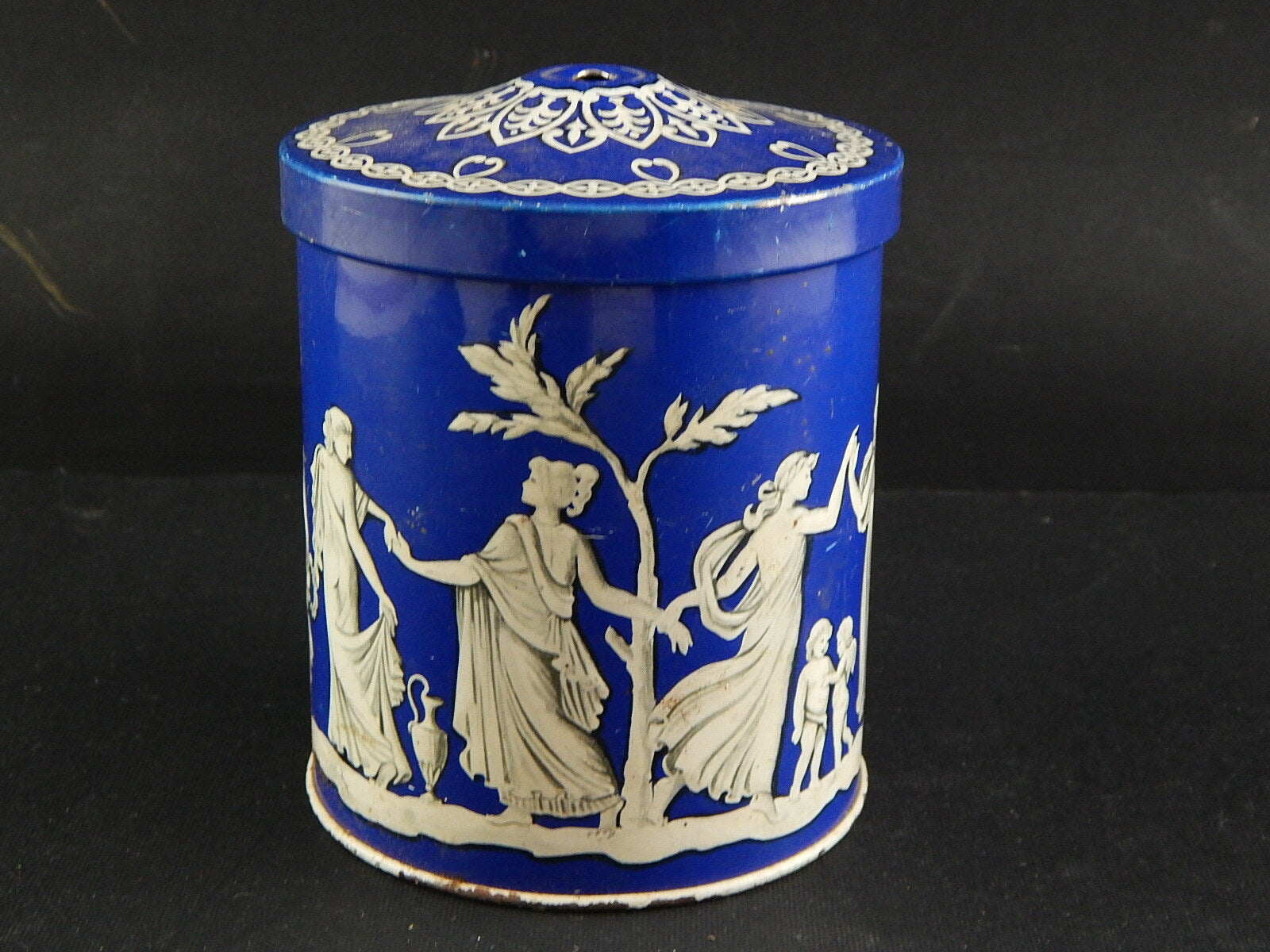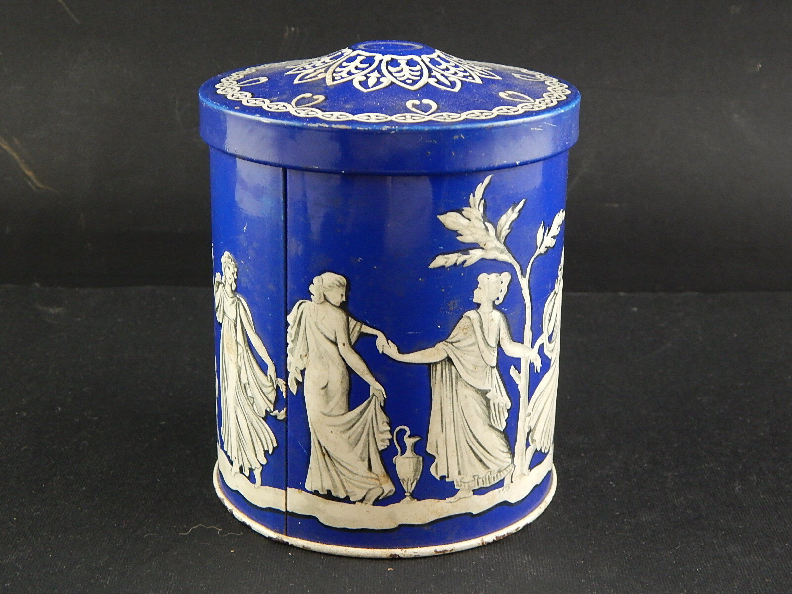 COLLEZIONE VINTAGE ORIGINALE SCATOLA DI LATTA BLU COBALTO FIGURE MITOLOGIA