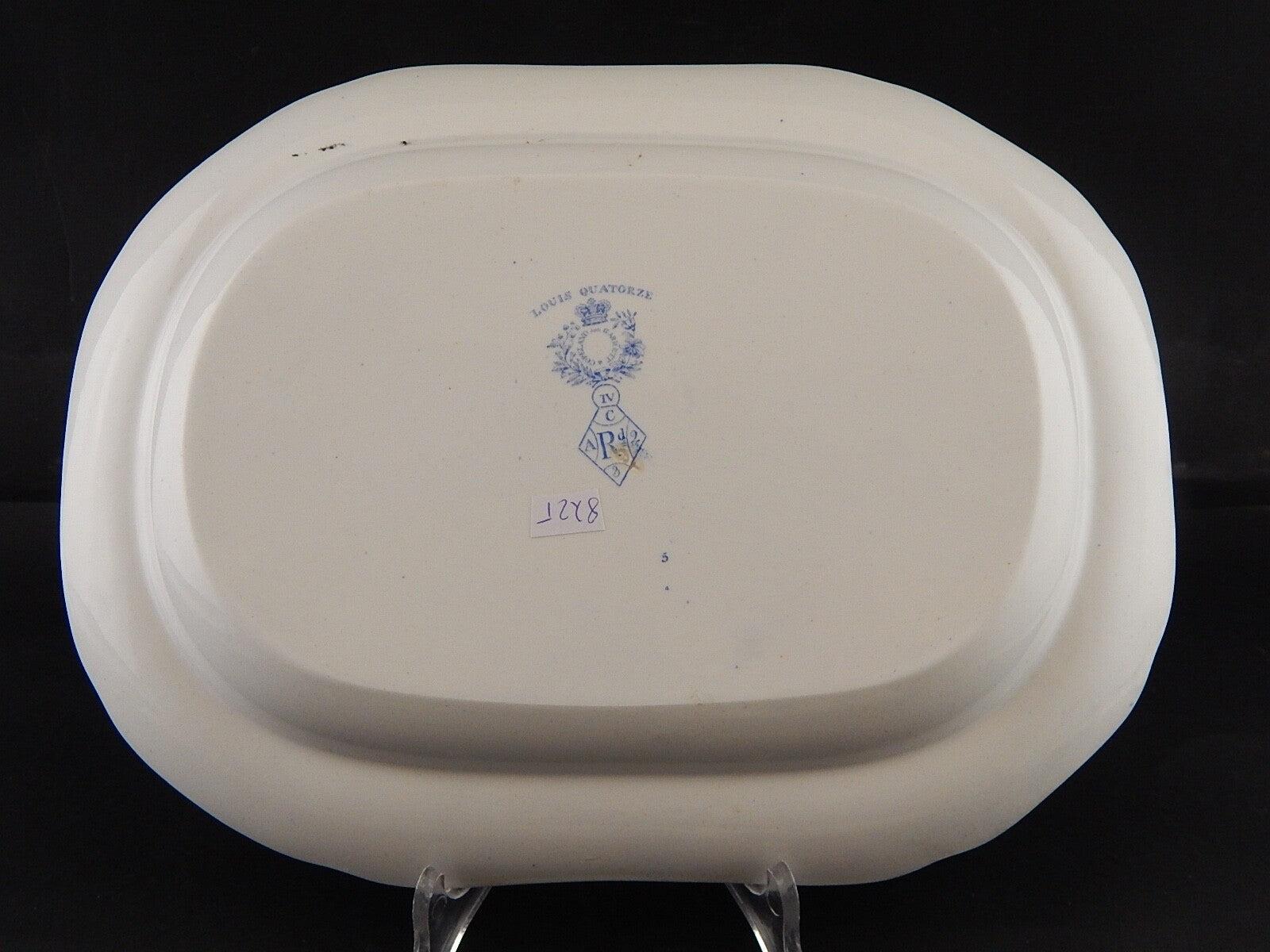 In questa inserzione viene presentato un antico e rarissimo vassoio della famosa manifattura inglese Copeland & Garrett. Come mostra il marchio impresso sul retro il piatto risale al 1844, misura 32 x 24 cm. ed è decorato con la tecnica del Transferware in azzurro.