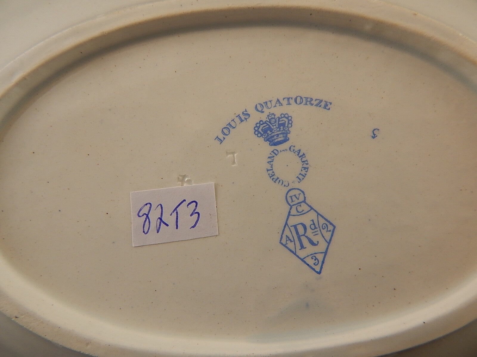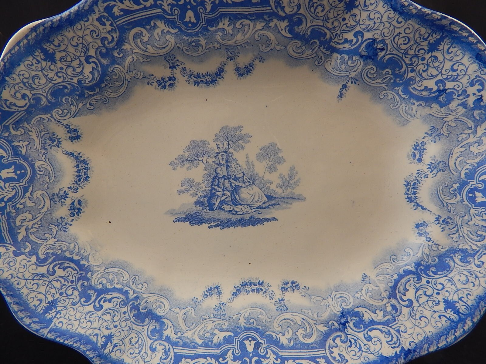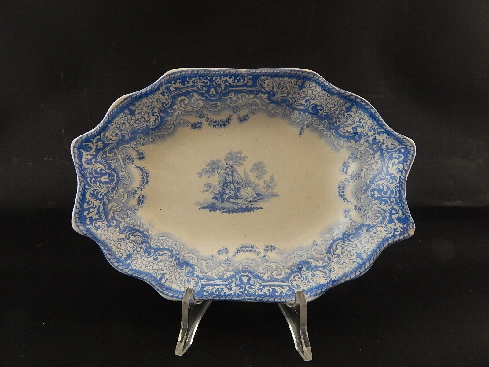 In questa inserzione viene presentato un antico e rarissimo vassoio della famosa manifattura inglese Copeland & Garrett. Come mostra il marchio impresso sul retro il piatto risale al 1844, misura 22,5 x 15,5 cm. ed è decorato con la tecnica del Transferware in azzurro
