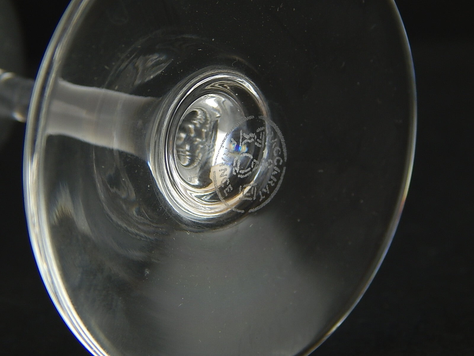 In questa inserzione viene presentato un bicchiere di cristallo a calice realizzato dalla famosa e rinomata manifattura francese Baccarat come certificato dal marchio impresso sotto la base.