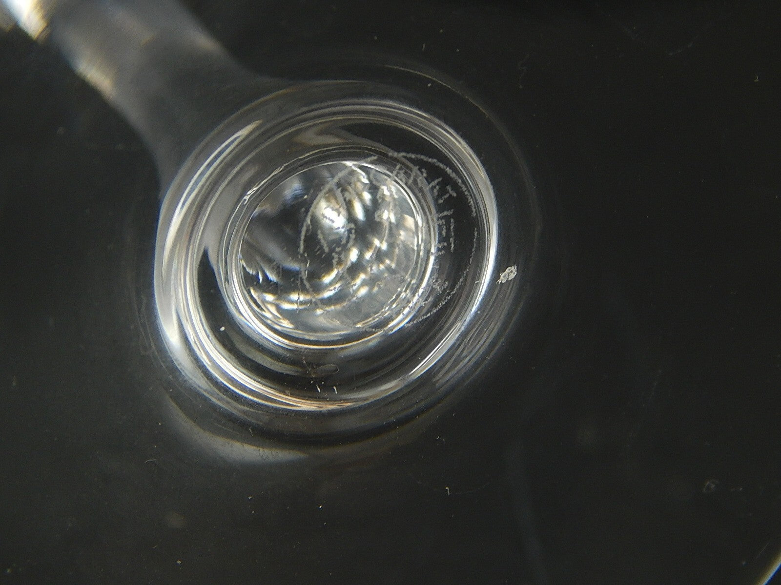 In questa inserzione viene presentato un bicchiere di cristallo a calice realizzato dalla famosa e rinomata manifattura francese Baccarat come certificato dal marchio impresso sotto la base.