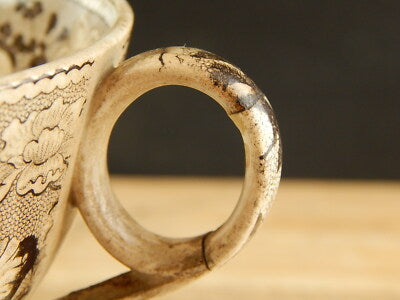 In questa inserzione viene presentata un’antica e rarissima tazza da puerpera o zuppiera egoiste della famosa manifattura inglese Davenport, come mostra il marchio impresso la tazza risale al 1805.