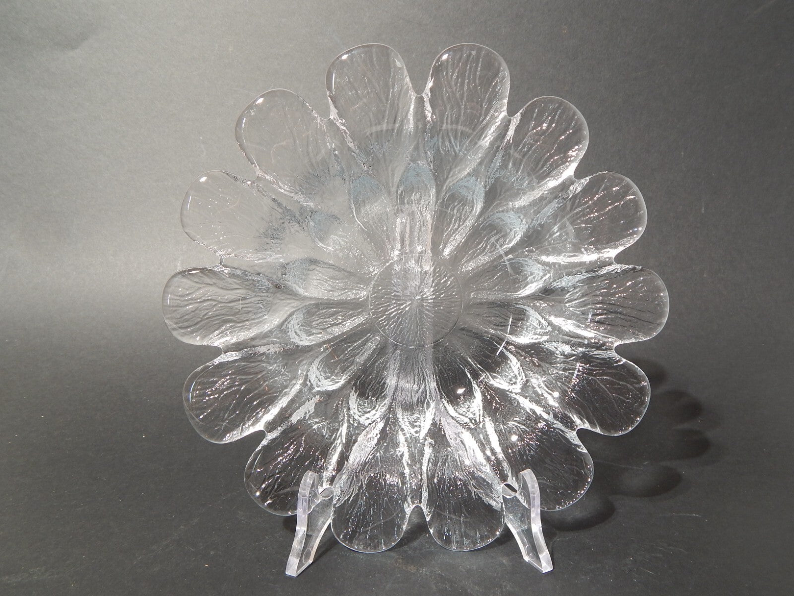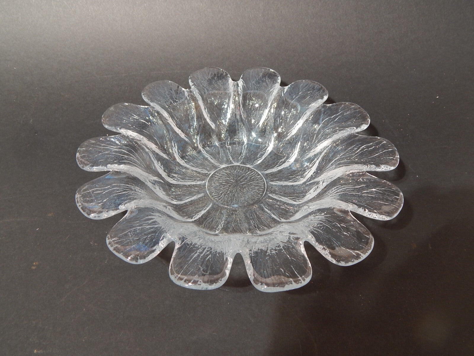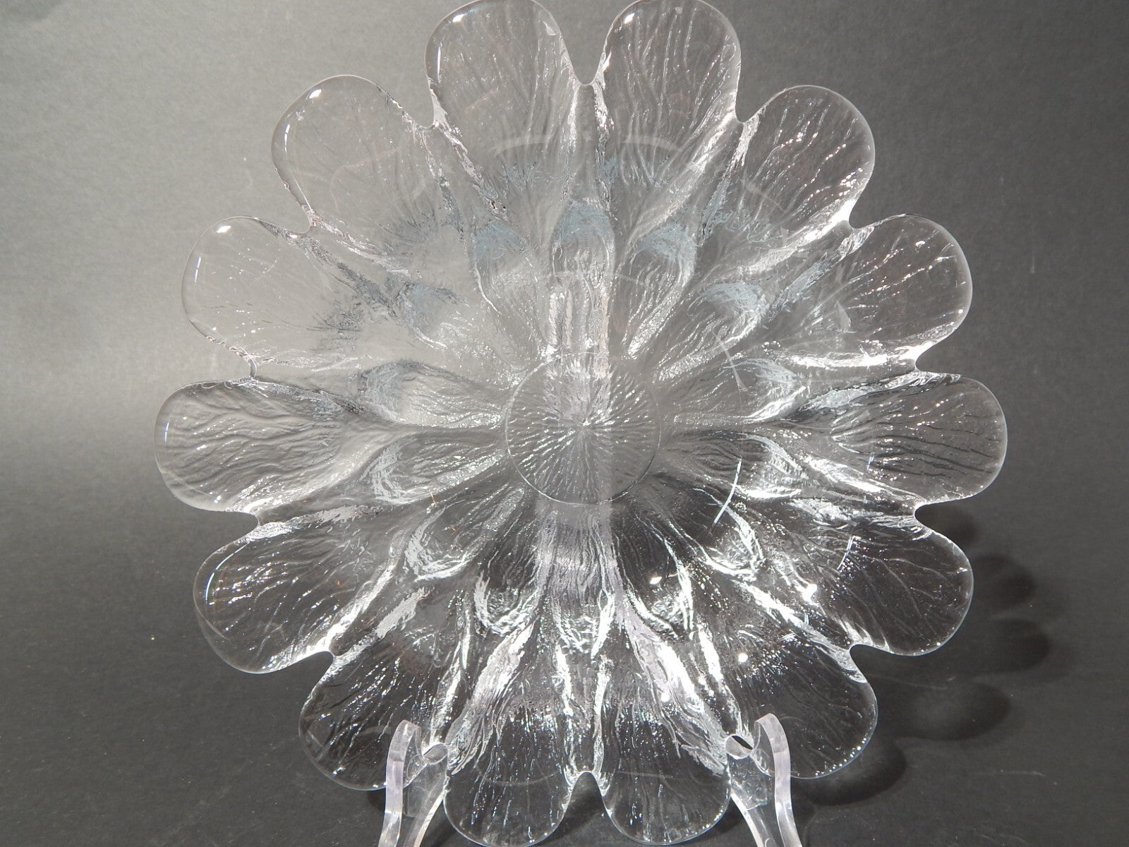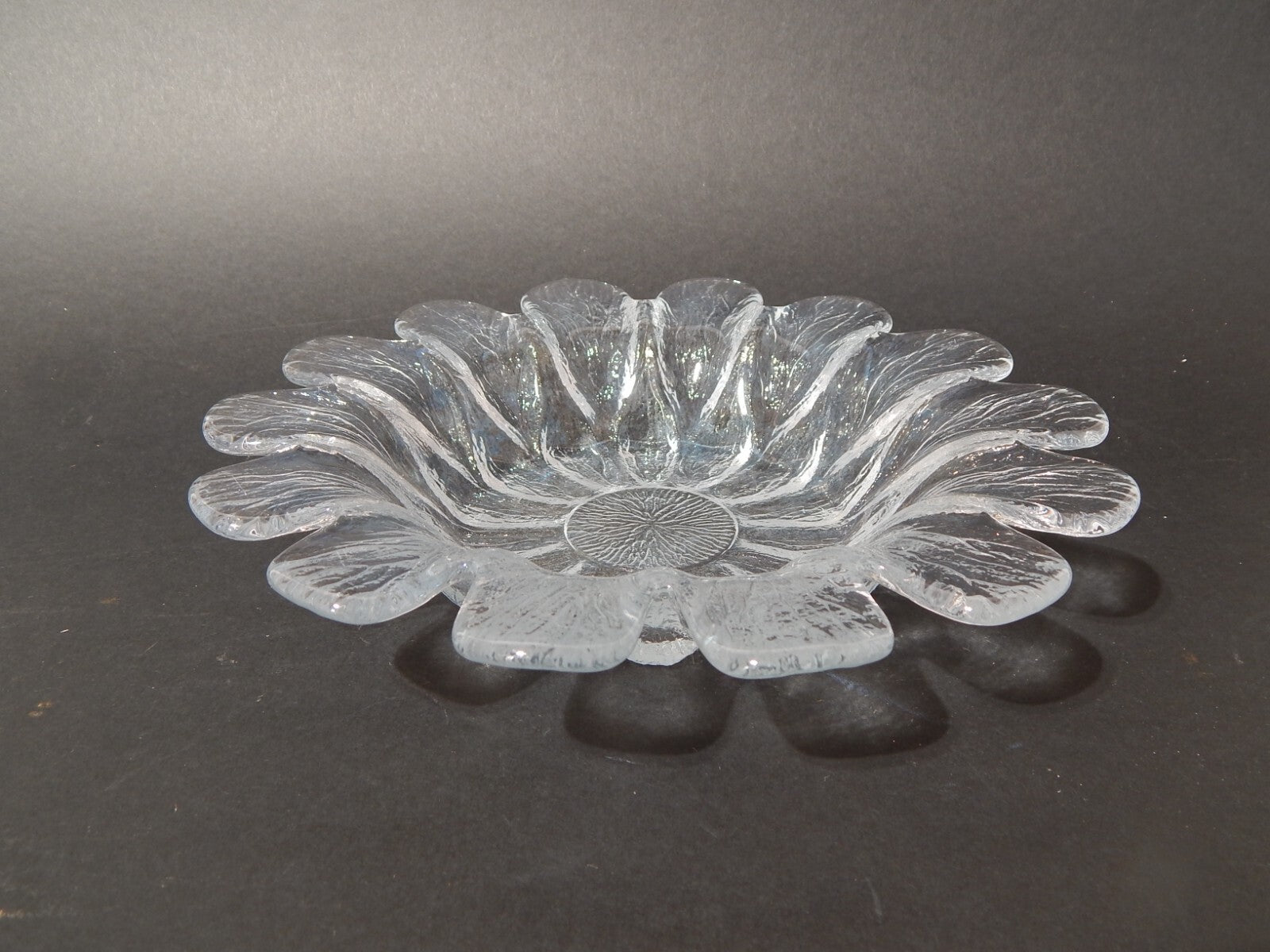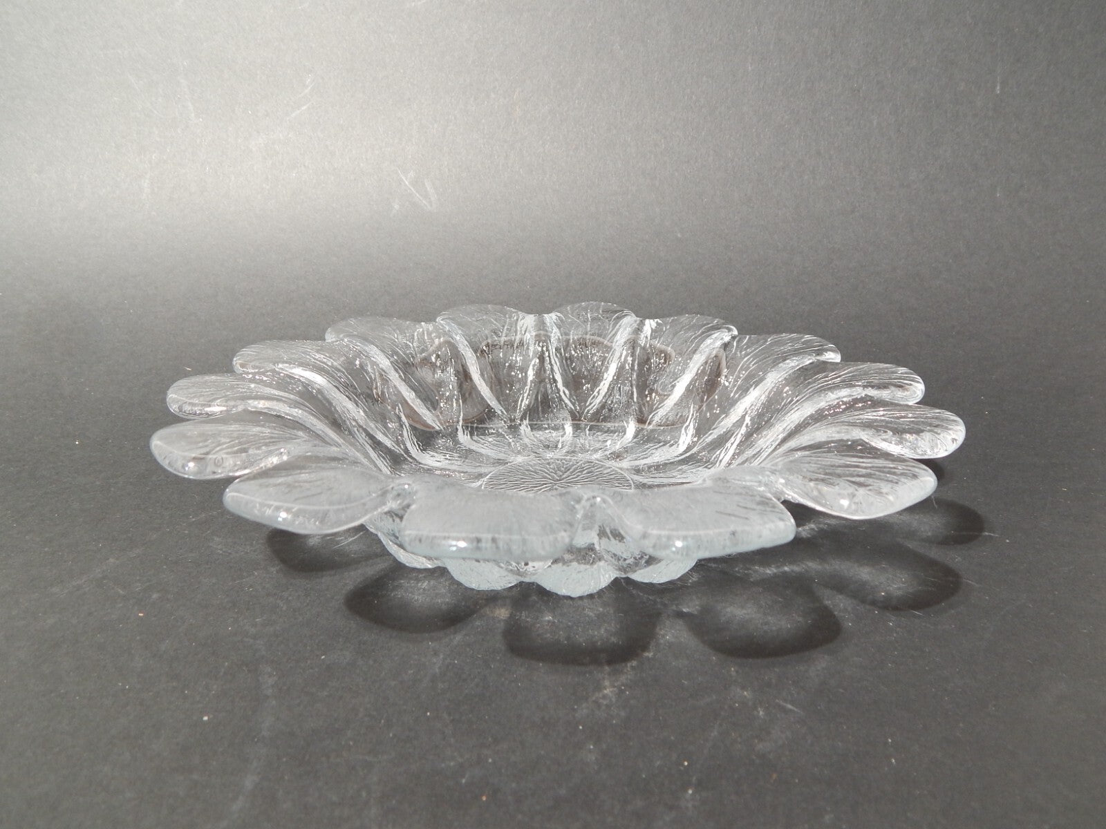 In questa inserzione viene presentato un piatto o centrotavola a forma di margherita realizzato dalla manifattura danese Holmegaard