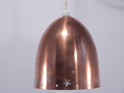 Il lampadario è funzionante, è stato realizzato in rame da un designer danese e misura 14 cm. di diametro e 15,5 cm. di altezza.