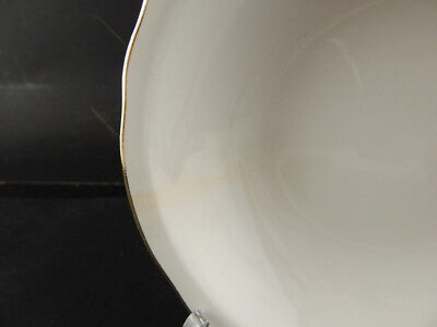 In questa inserzione viene presentata una ciotola in ceramica bianca con profilo oro realizzata negli anni '60 dalla manifattura Italiana Verbanum Stone nello stabilimento di Laveno.