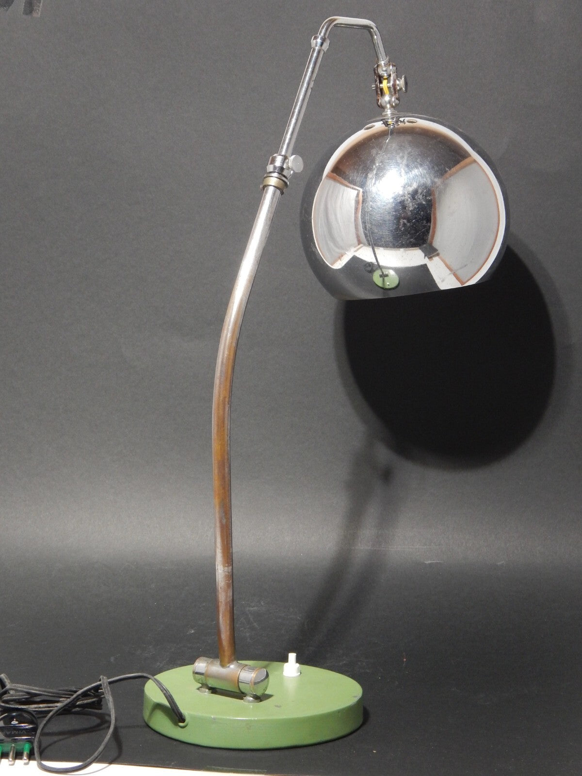 MODERNARIATO RARA LAMPADA TAVOLO SCRIVANIA PARALUME GLOBO CROMATO REGOLABILE