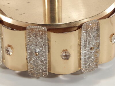 Il lampadario è stata prodotta negli anni '60 ed è in ottime condizioni, non presenta evidenti segna di usura e del tempo. E' stata realizzata in cristallo a bolle e ottone, misura 33 cm. di diametro e 13 cm. di altezza ed è funzionante.