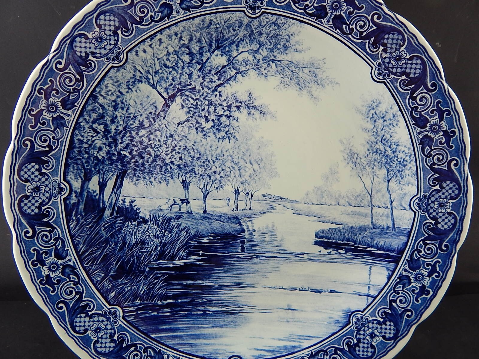 In questa inserzione viene presentato un piatto da collezione in porcellana vintage, realizzato in porcellana e decorato sottosmalto dalla rinomata manifattura olandese Delfts Royal Sphinx di Maastricht
