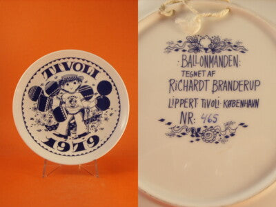 In questa inserzione è presentato un piatto in porcellana di Copenhagen disegnato nel 1979 da Richardt Branderup per il più antico parco divertimenti d'Europa, TIVOLI.