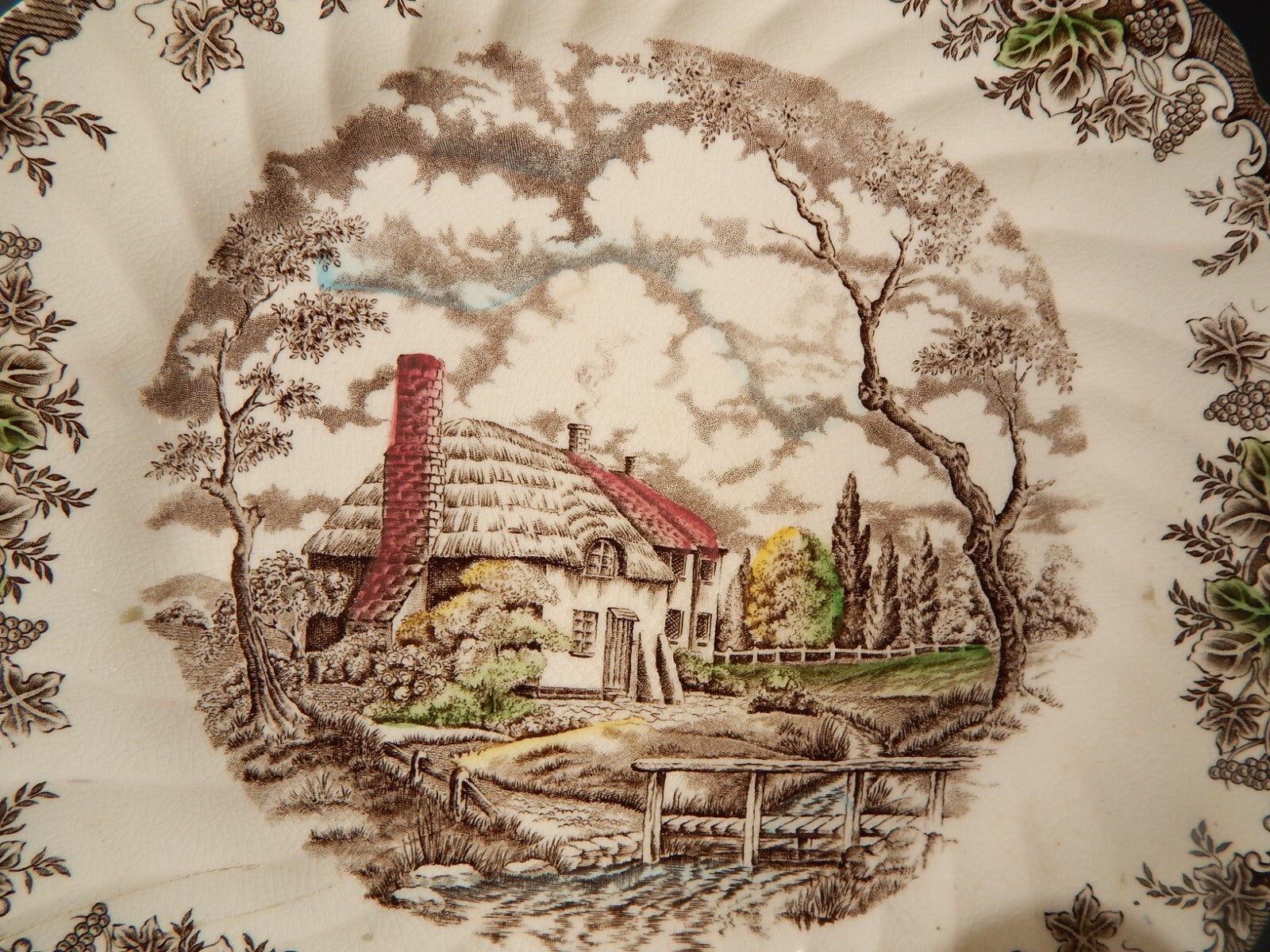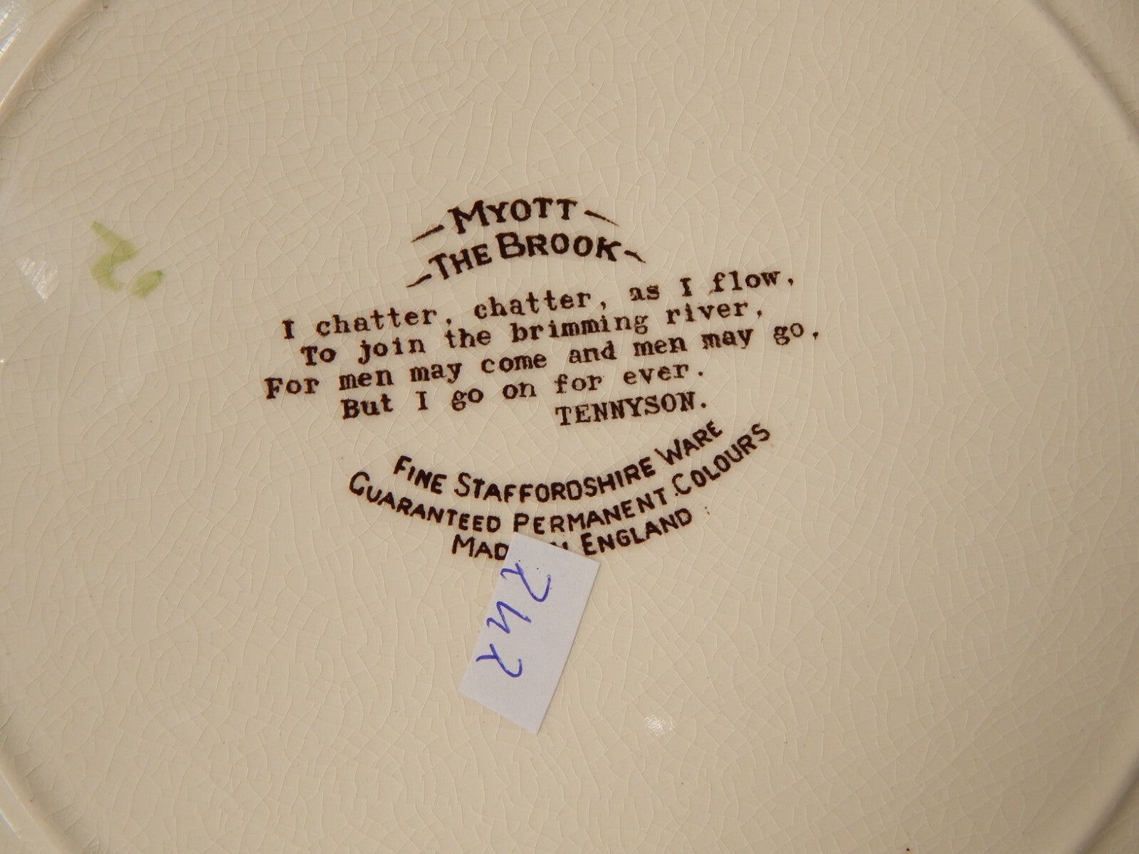 In questa inserzione viene presentato un piatto di semi porcellana inglese realizzato dalla manifattura Myott Staffordshire nel decoro "The Brook".