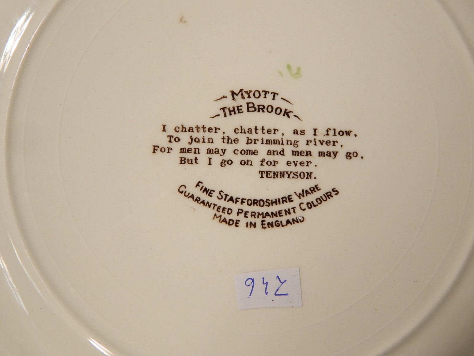 In questa inserzione viene presentato un piatto di semi porcellana inglese realizzato dalla manifattura Myott Staffordshire nel decoro "The Brook".