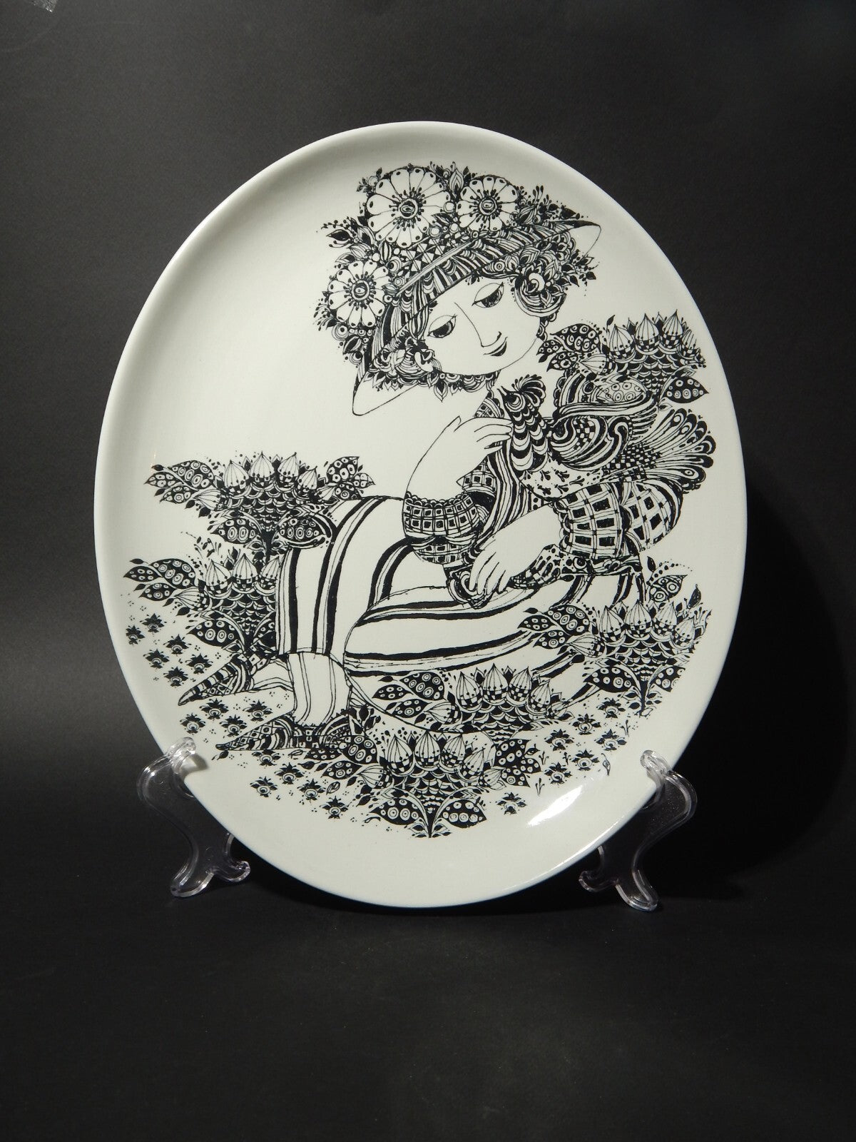 In questa inserzione viene presentato un grande piatto ovale o vassoio di porcellana disegnato negli anni '70 dal famoso artista danese Bjorn Wiiblad.