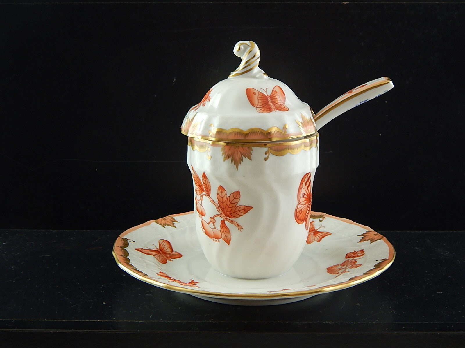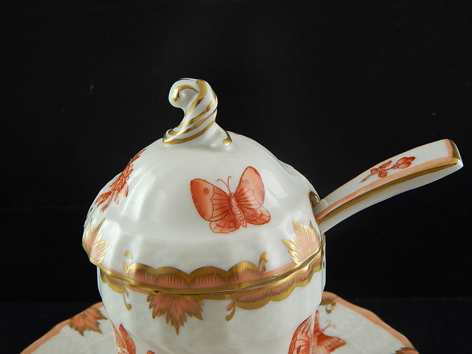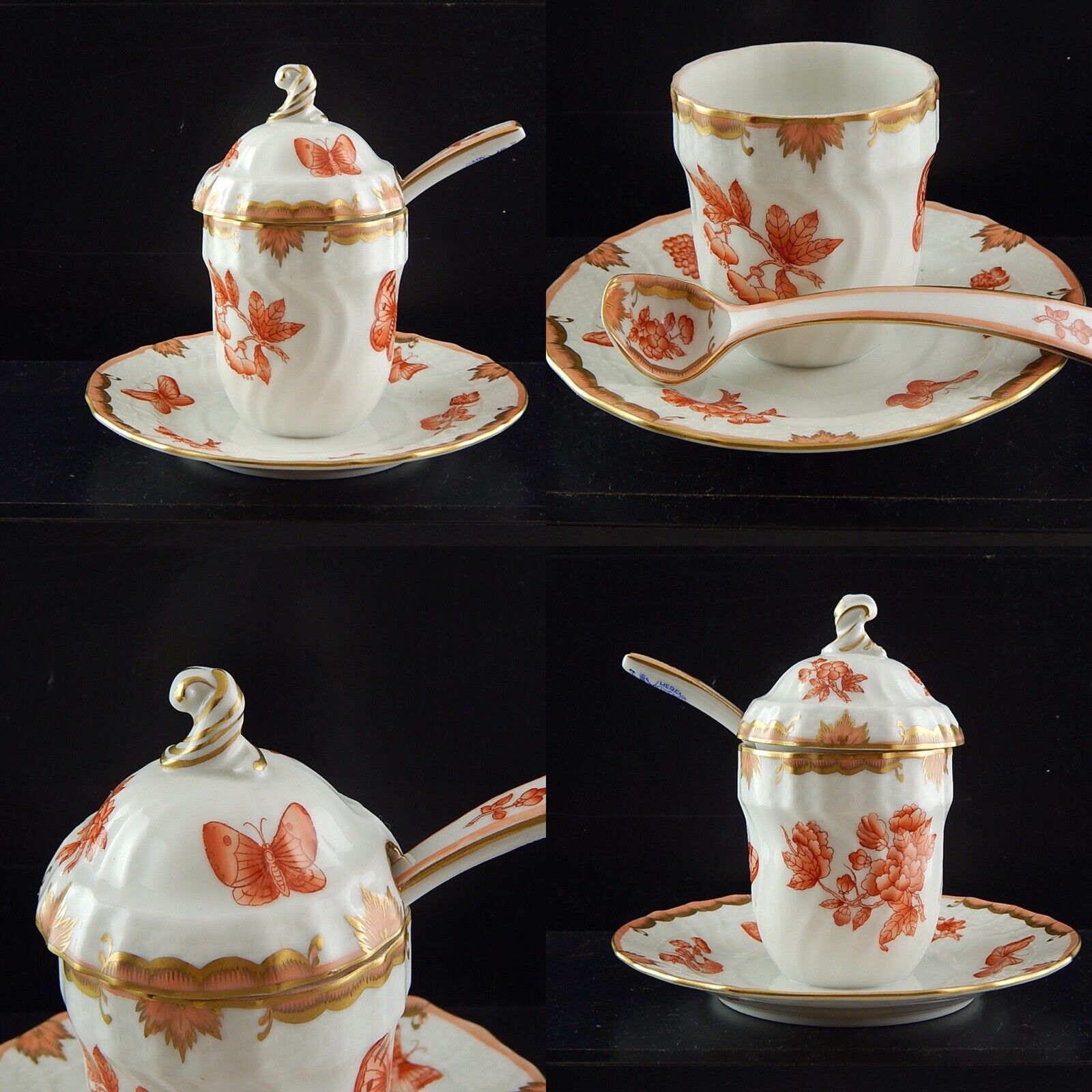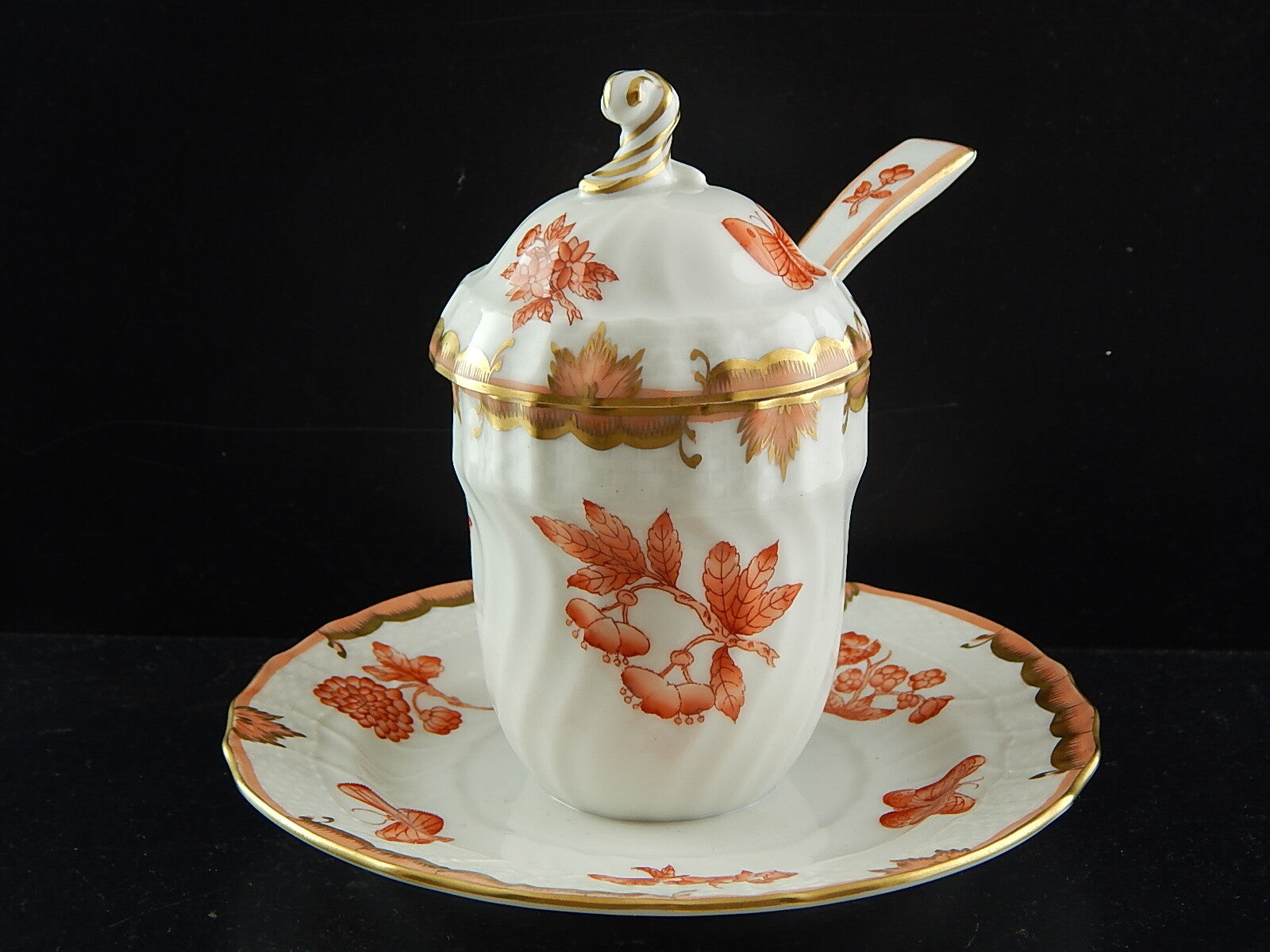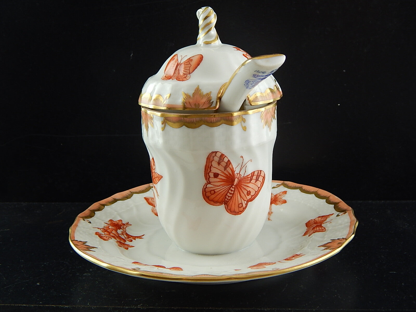 PORCELLANA HEREND INTROVABILE PORTA MARMELLATA DIPINTA A MANO FARFALLE FORTUNA
