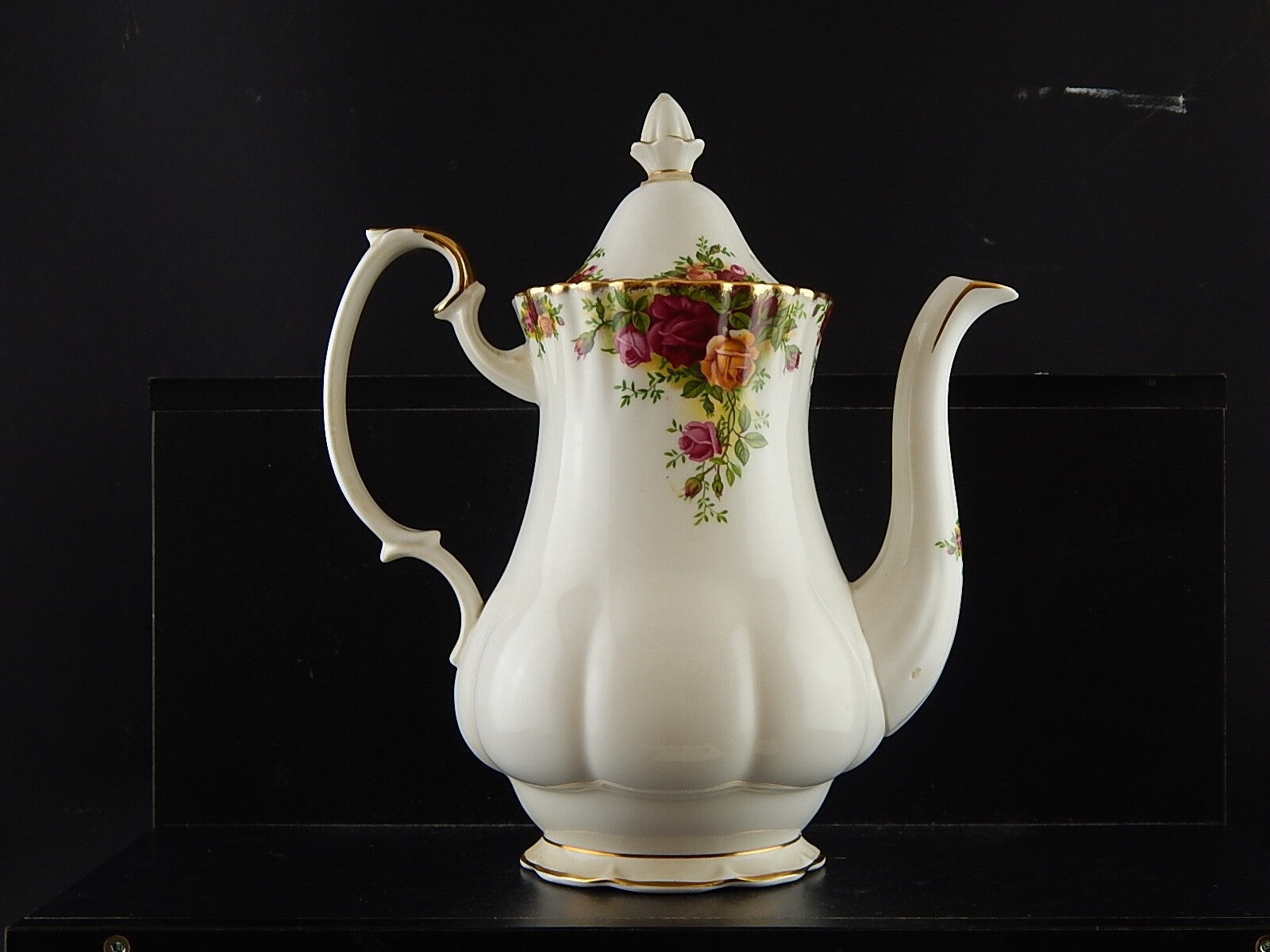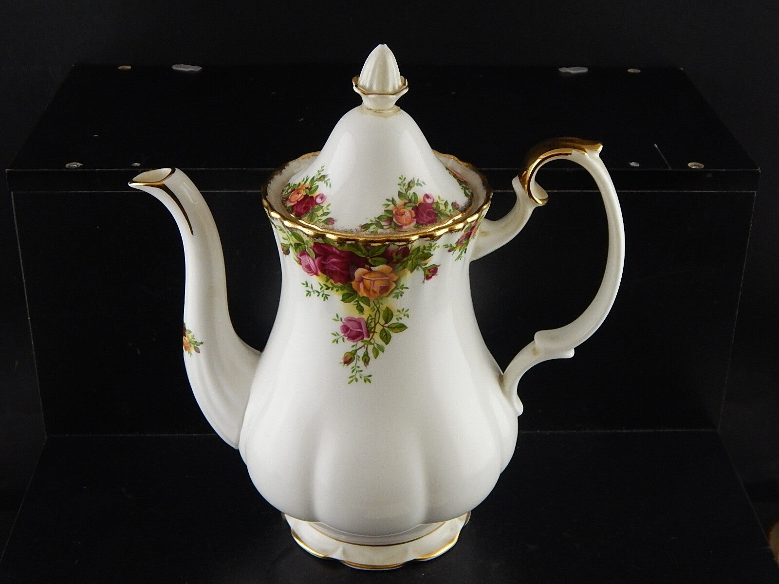 In questa inserzione viene presentata una caffettiera o teiera realizzata dalla manifattura inglese Royal Albert nel disegno Old Country Roses