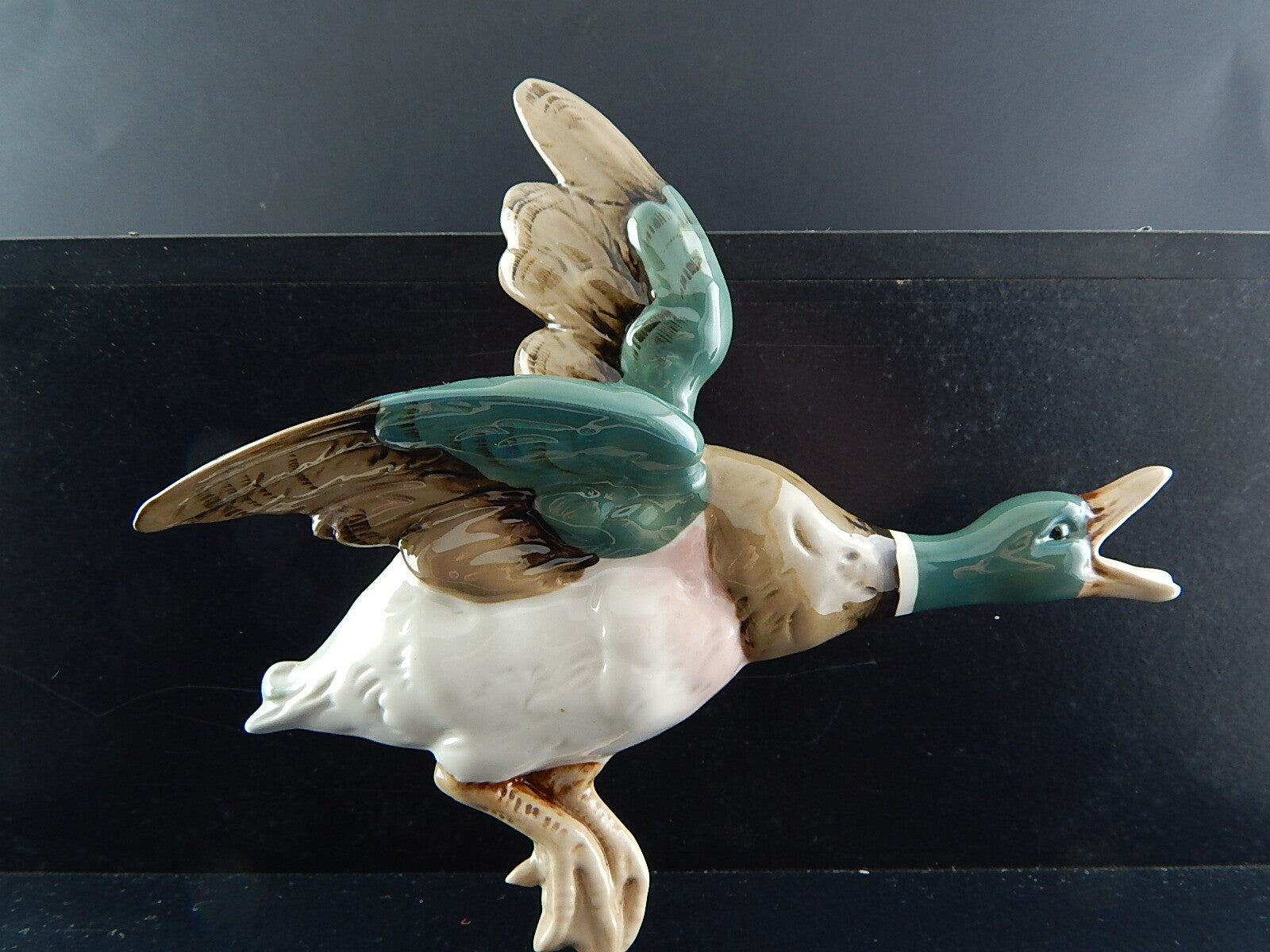PORCELLANA ROYAL DUX ANTICA ANNI ‘30 STATUINA ANATRA DIPINTA MANO DA APPENDERE