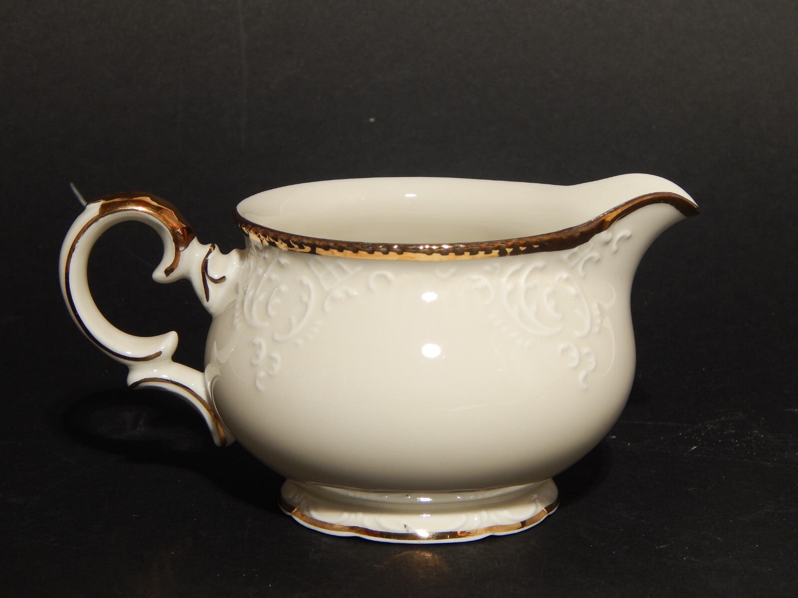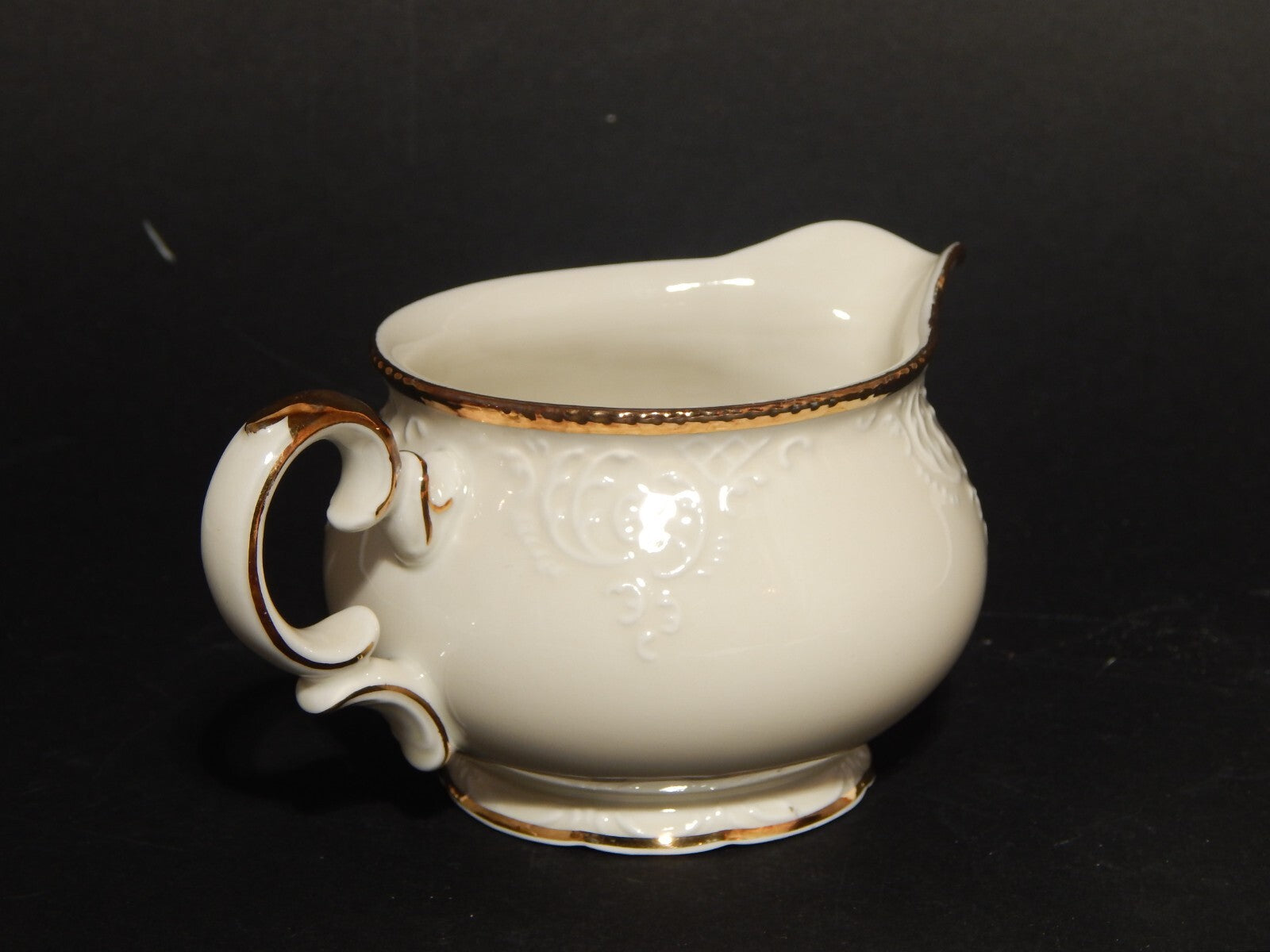 In questa inserzione viene presentata una lattiera o bricco in porcellana color avorio decorata a rocaille e rifinita in oro zecchino, realizzata dalla manifattura tedesca Zeh Scherzer nella prima metà del 1900 in stile rocaille.
