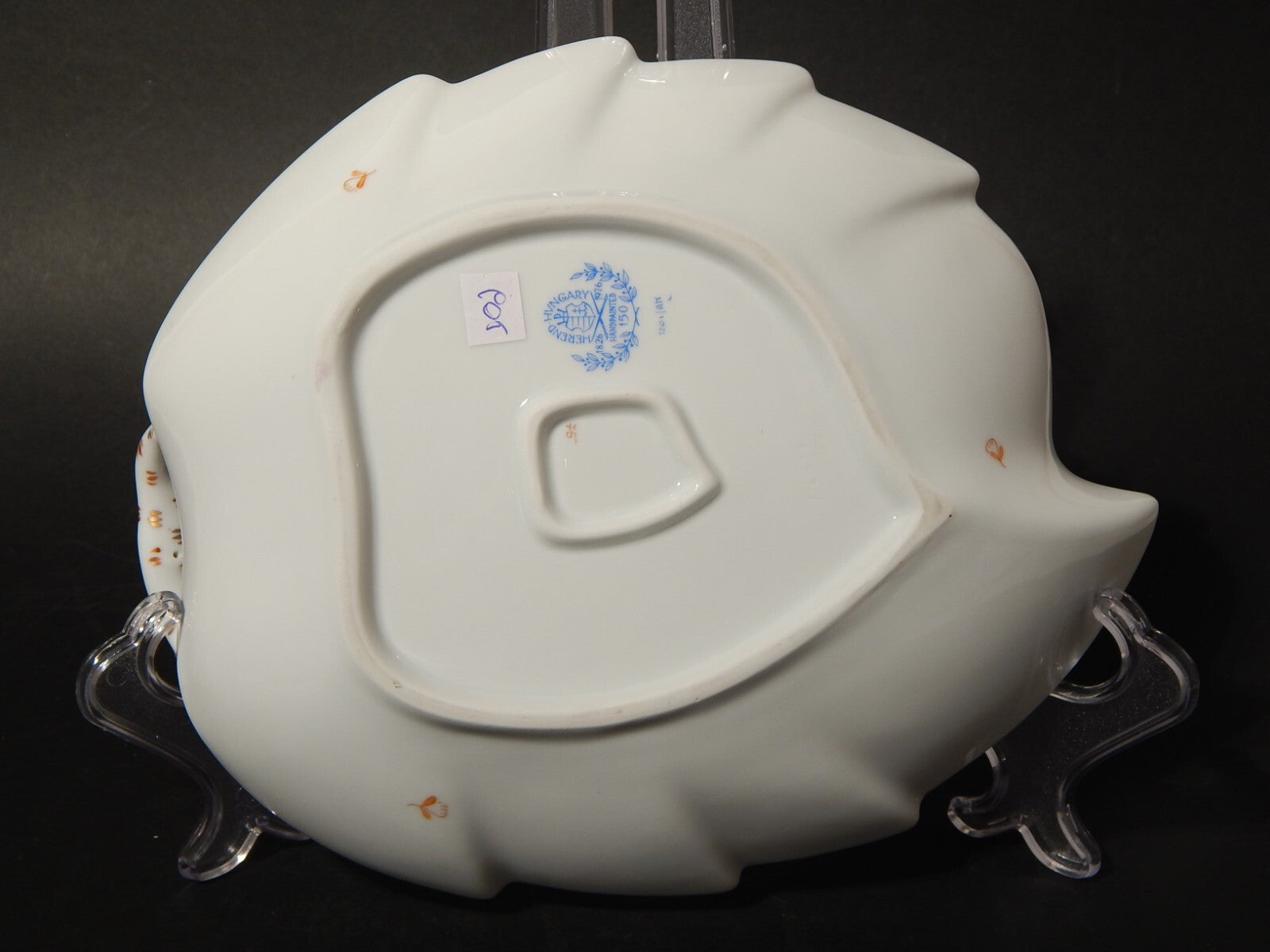In questa inserzione viene presentato un piatto a foglia realizzato dalla manifattura Herend nella seconda metà del 1900