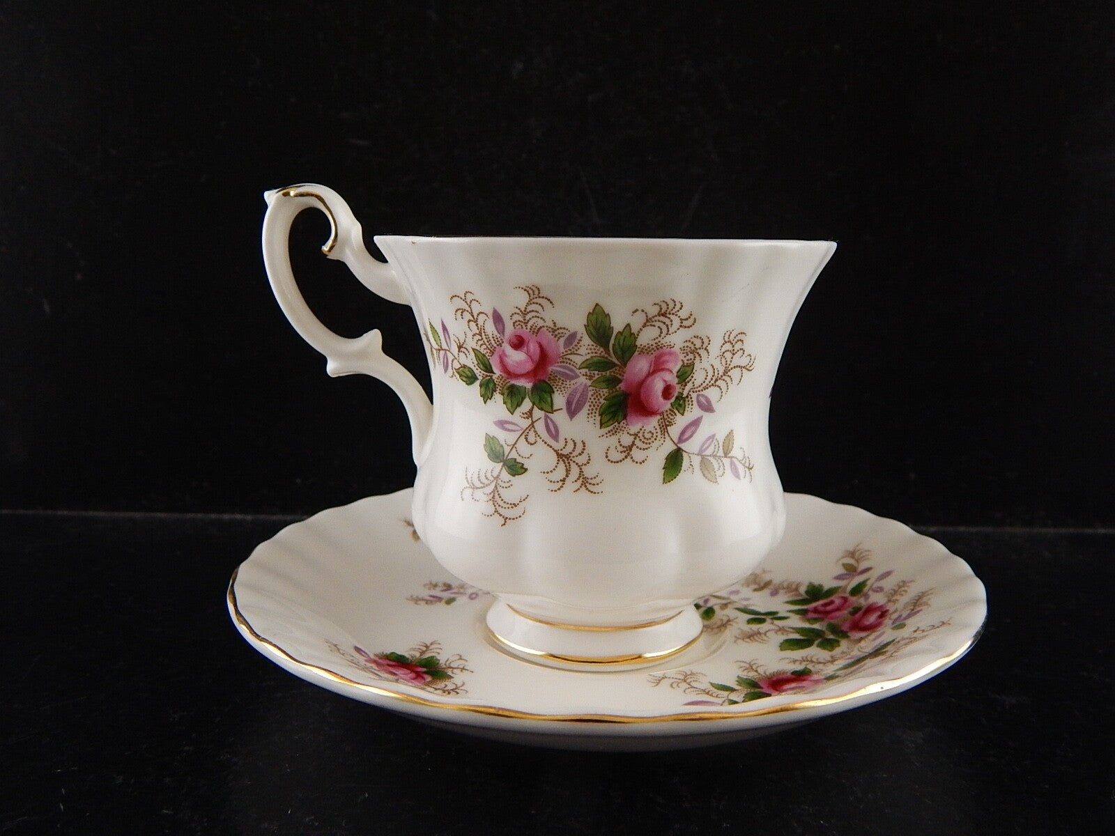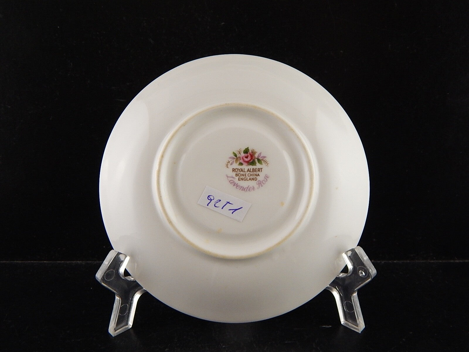 In questa inserzione viene presentata una tazza con relativo piattino realizzata dalla manifattura inglese Royal Albert nel disegno Lavender Rose