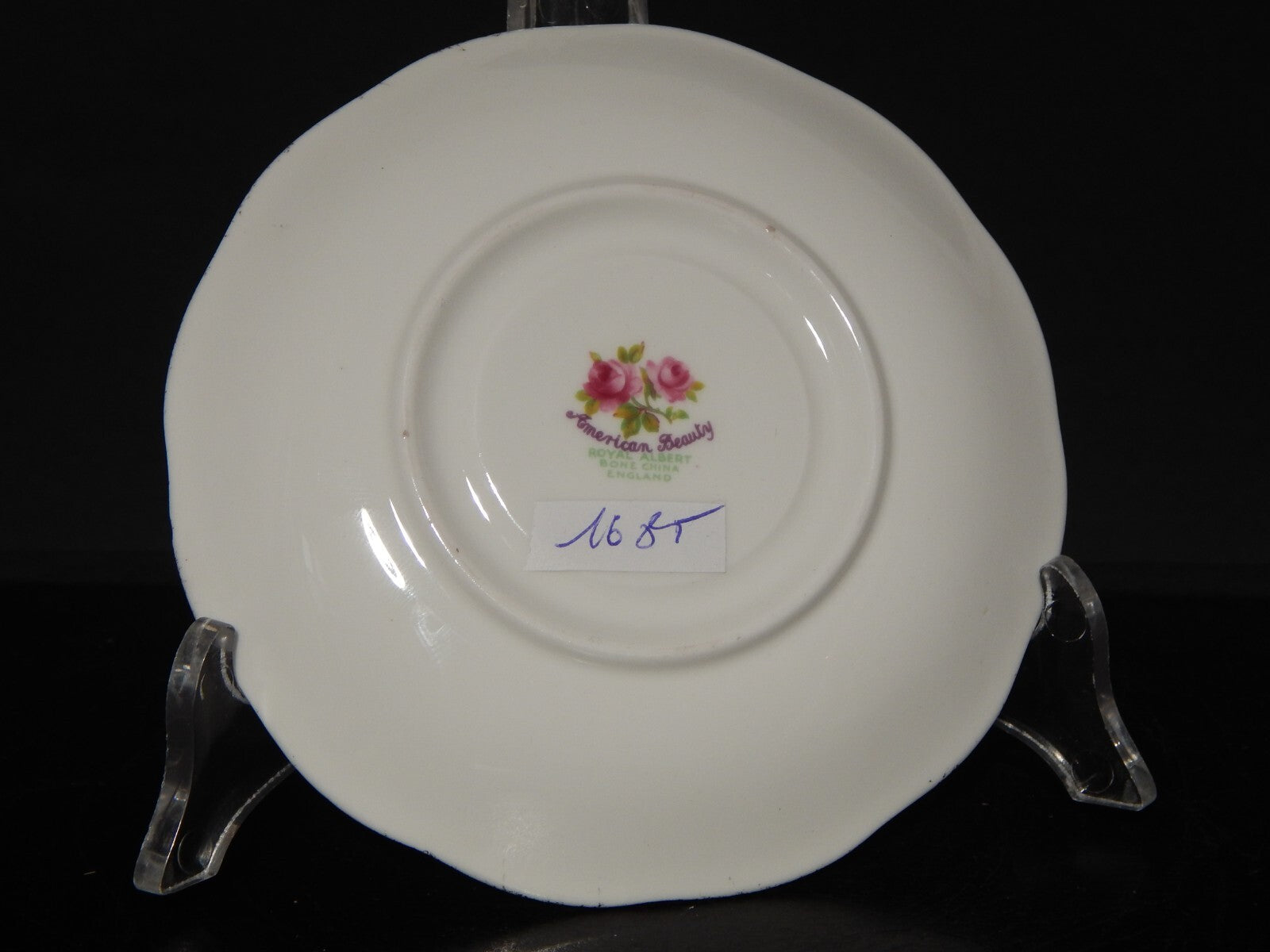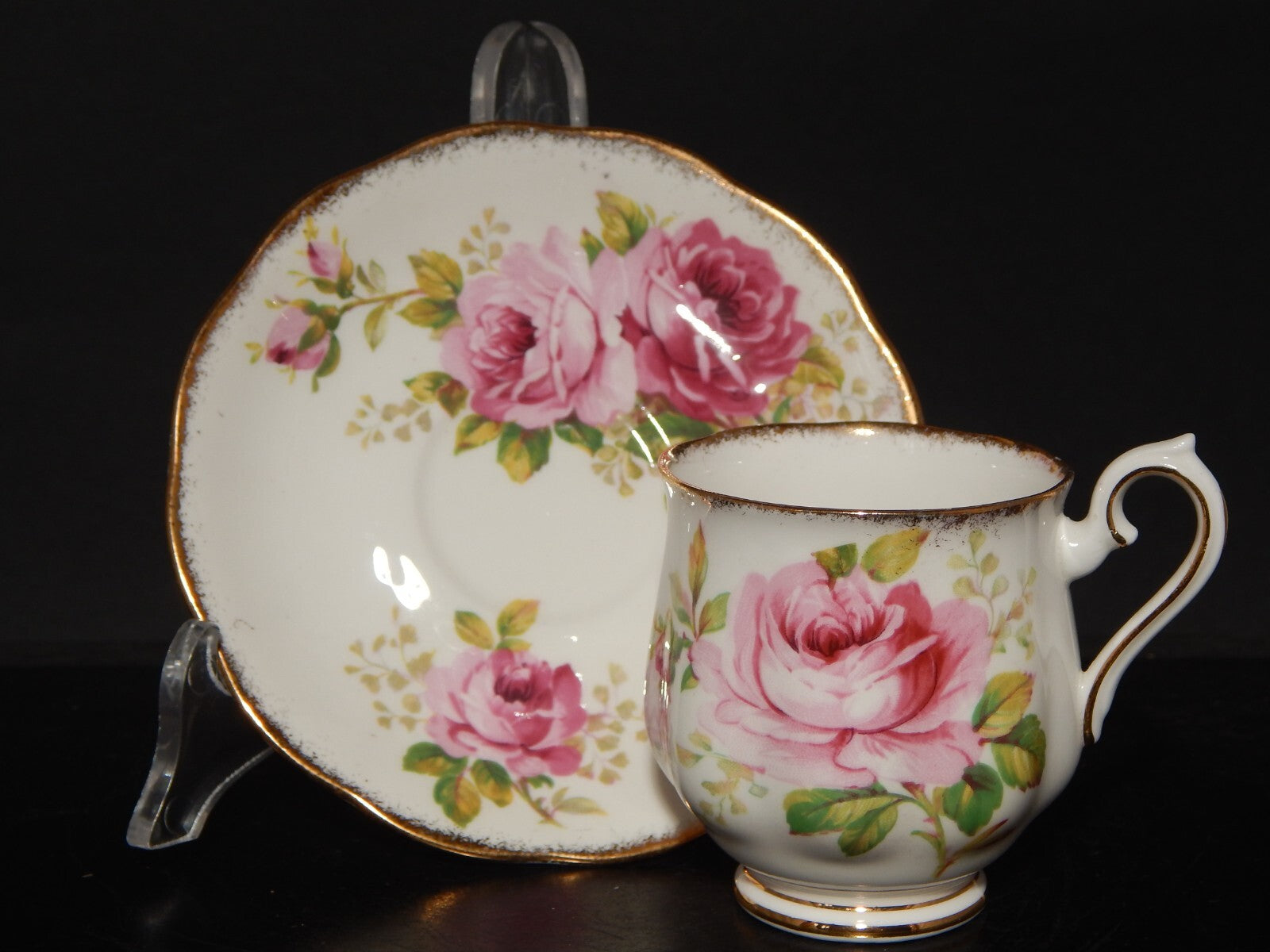 In questa inserzione viene presentata una tazza con relativo piattino realizzata dalla manifattura inglese Royal Albert nel disegno American Beauty
