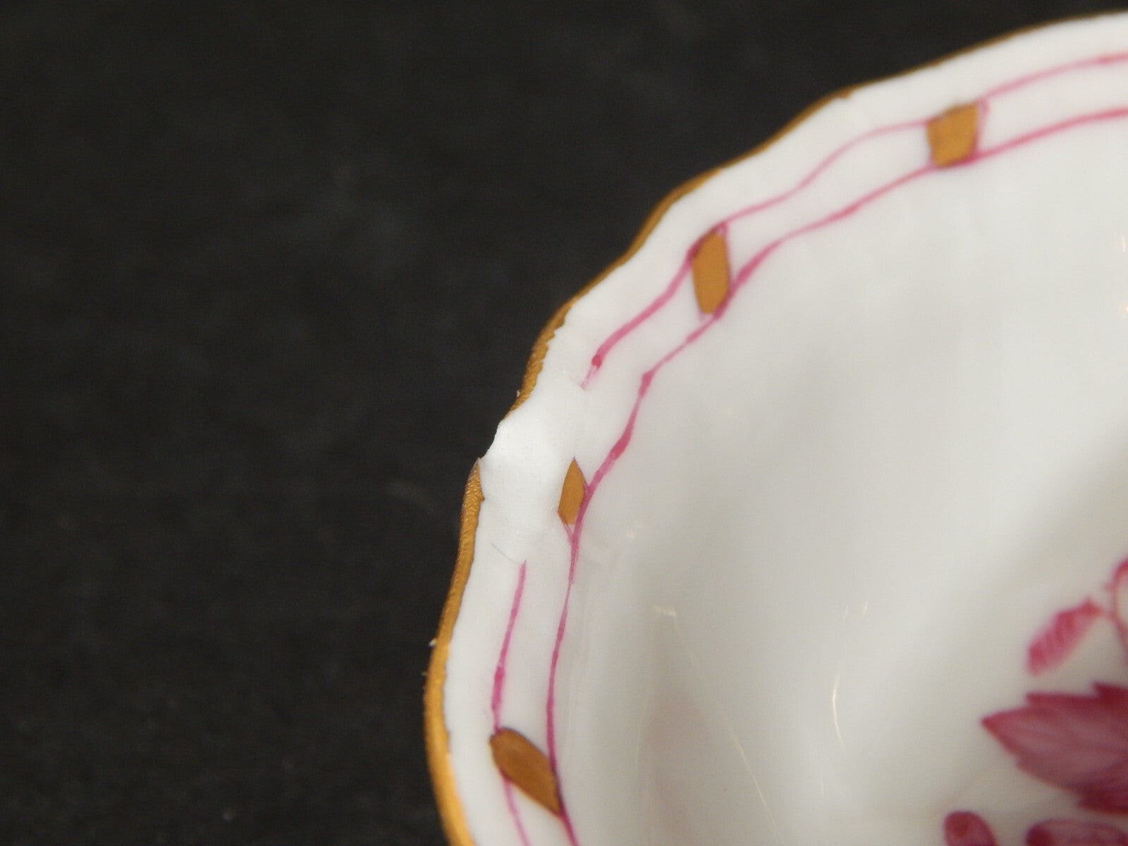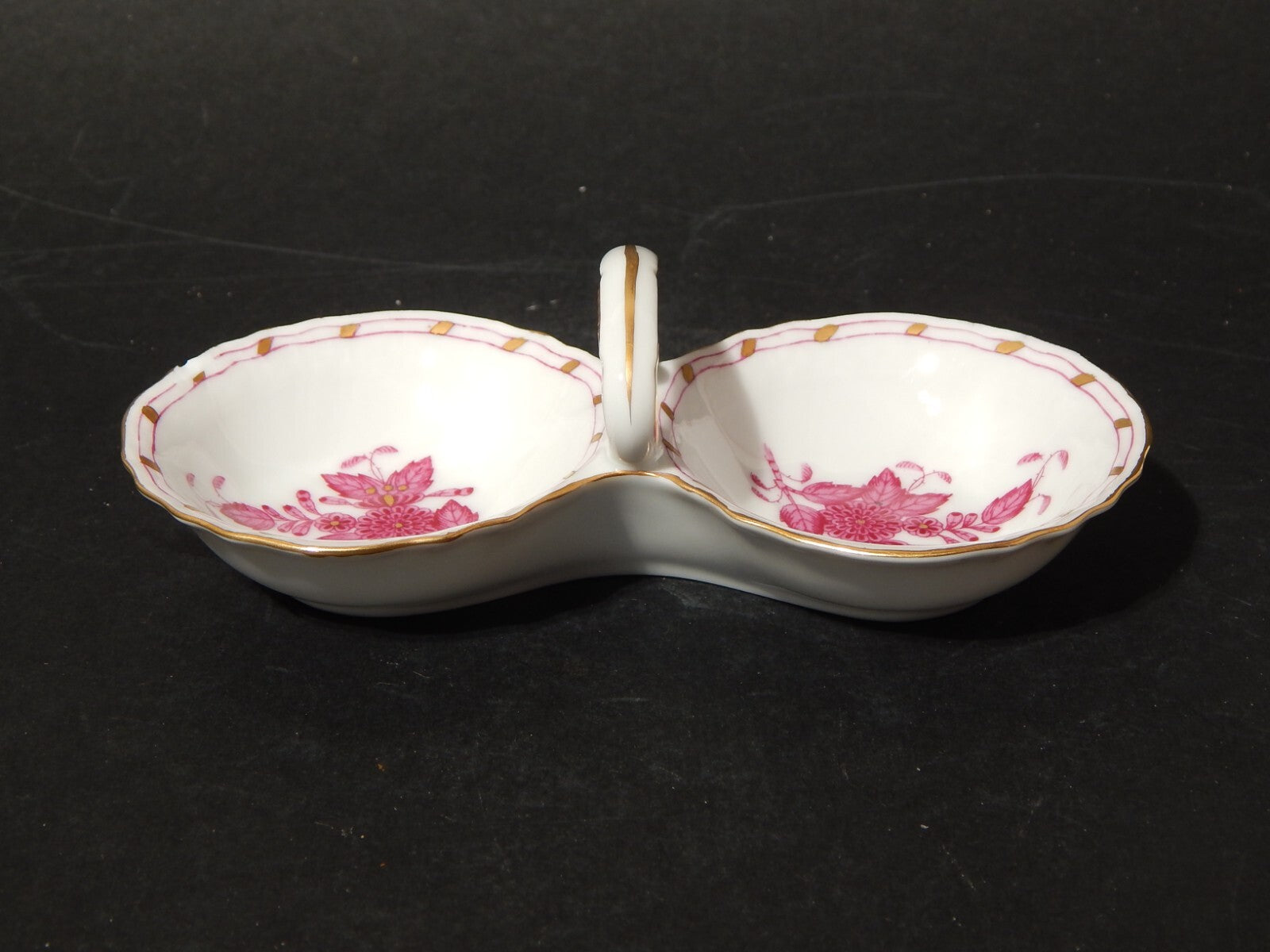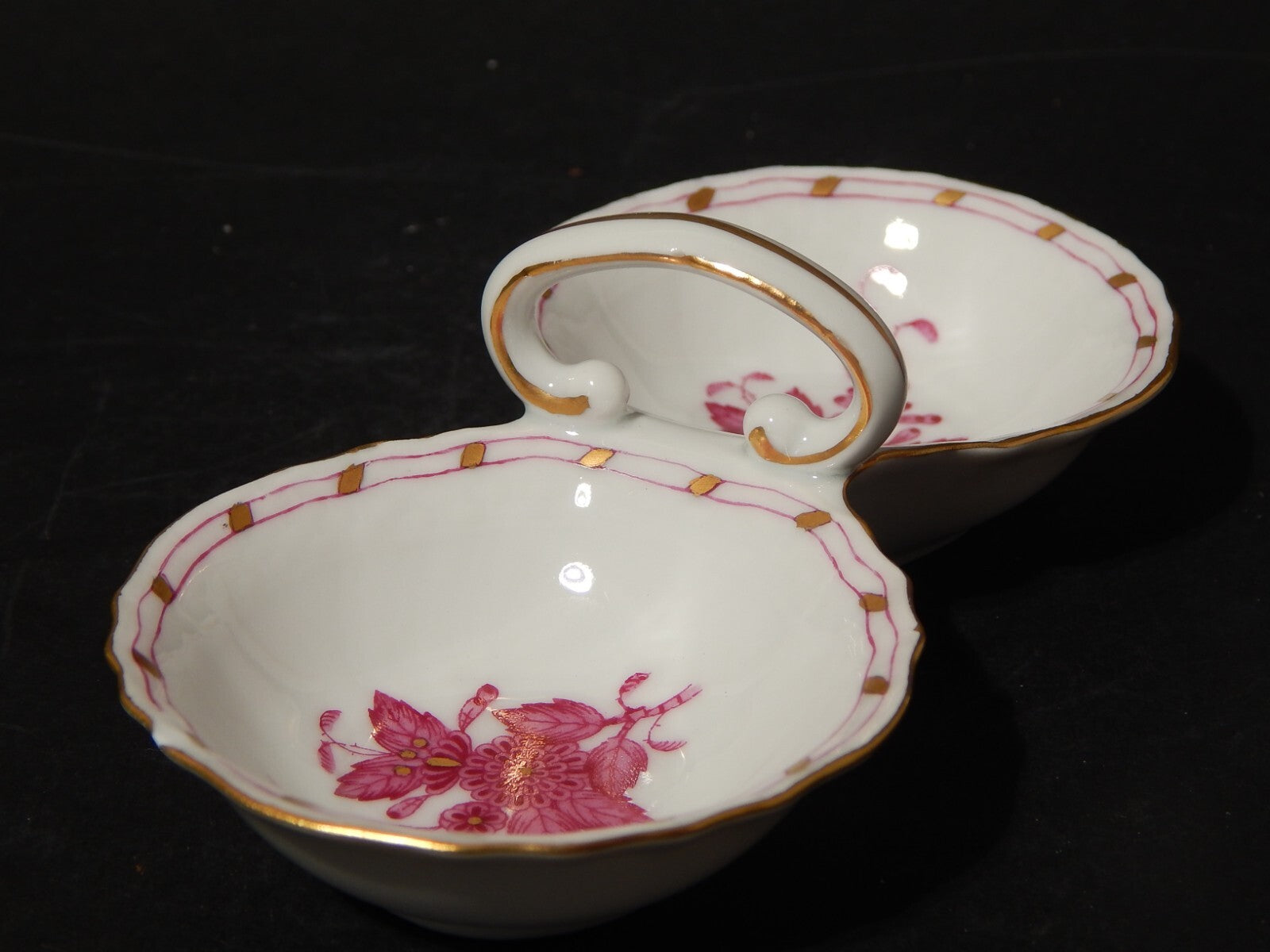 In questa inserzione viene presentata una saliera realizzata dalla manifattura Herend nella seconda metà del 1900 decorata con il famoso disegno Apponyi Chinese Bouquet rosa fucsia