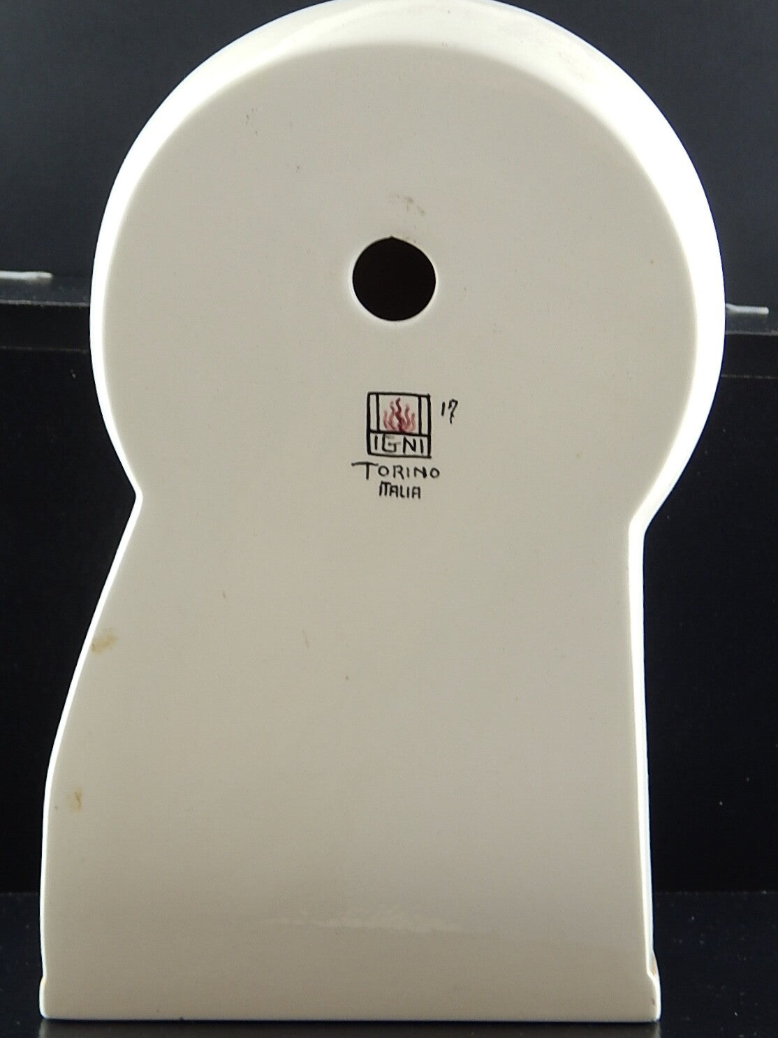 In questa inserzione viene presentato un antico altorilievo modellato a colaggio di un volto di MADONNA decorato con smalti semilucidi policromi. L’altorilievo fu realizzato alla fine degli anni 30 dalla manifattura Igni di Torino fondata nel 1936 da Lionello Franchini. Misura 24 cm di altezza e 15 cm di larghezza, sul retro il marchio della manifattura Per richieste particolari, dubbi o informazioni contattateci senza problemi. Risponderemo al più presto alle vostre domande. |
