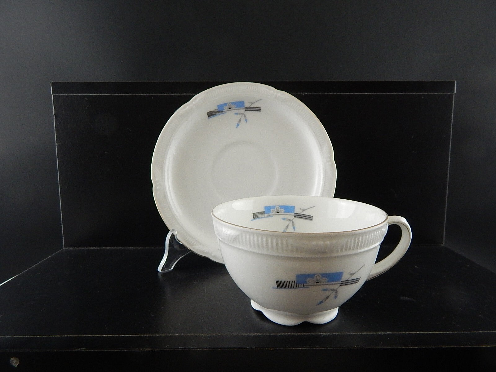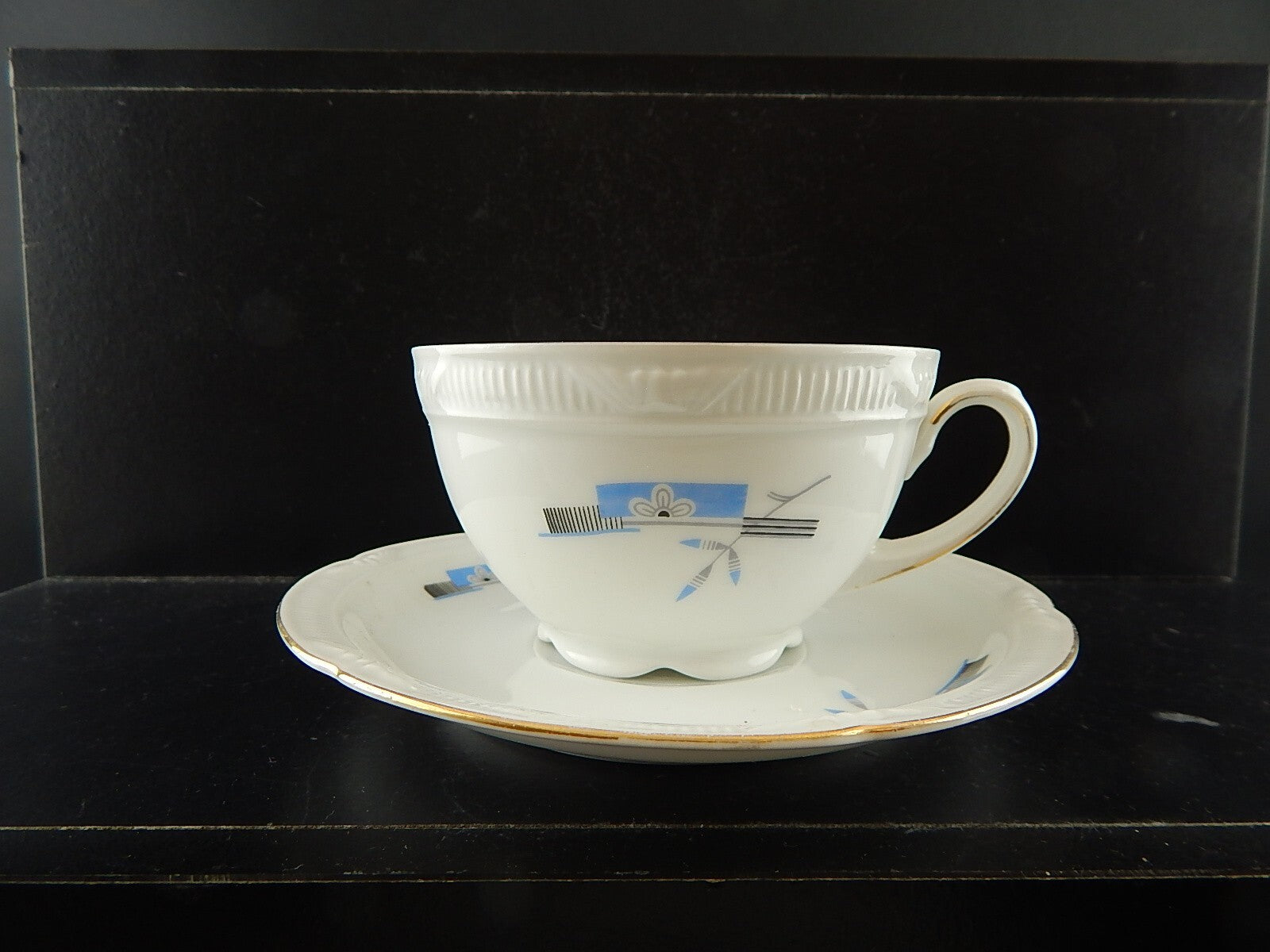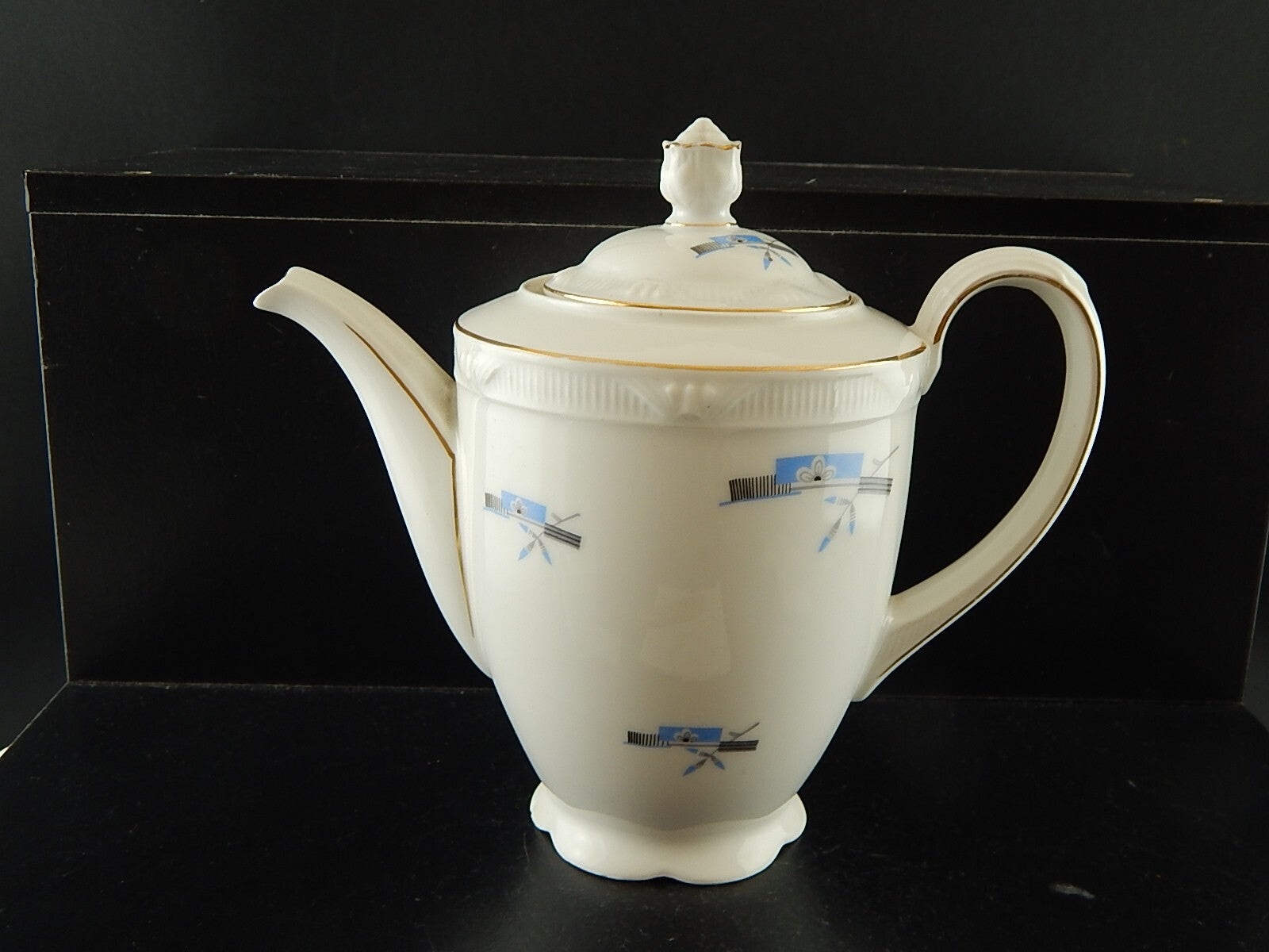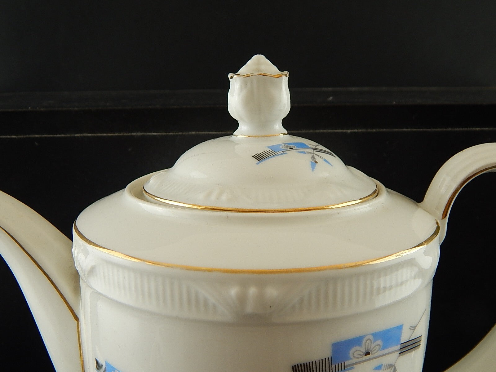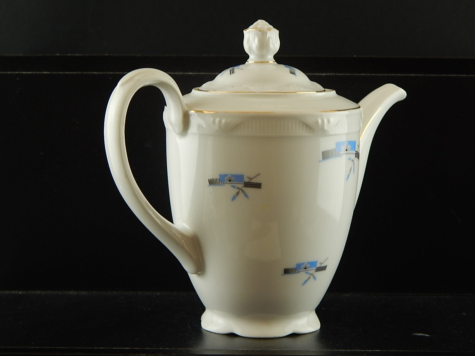 In questa inserzione viene presentato un servizio da tè Art Decò realizzato in porcellana di altissima qualità decorato in azzurro e nero e rifinito a mano in oro zecchino dalla manifattura tedesca ZEH SCHERZER Bavaria.