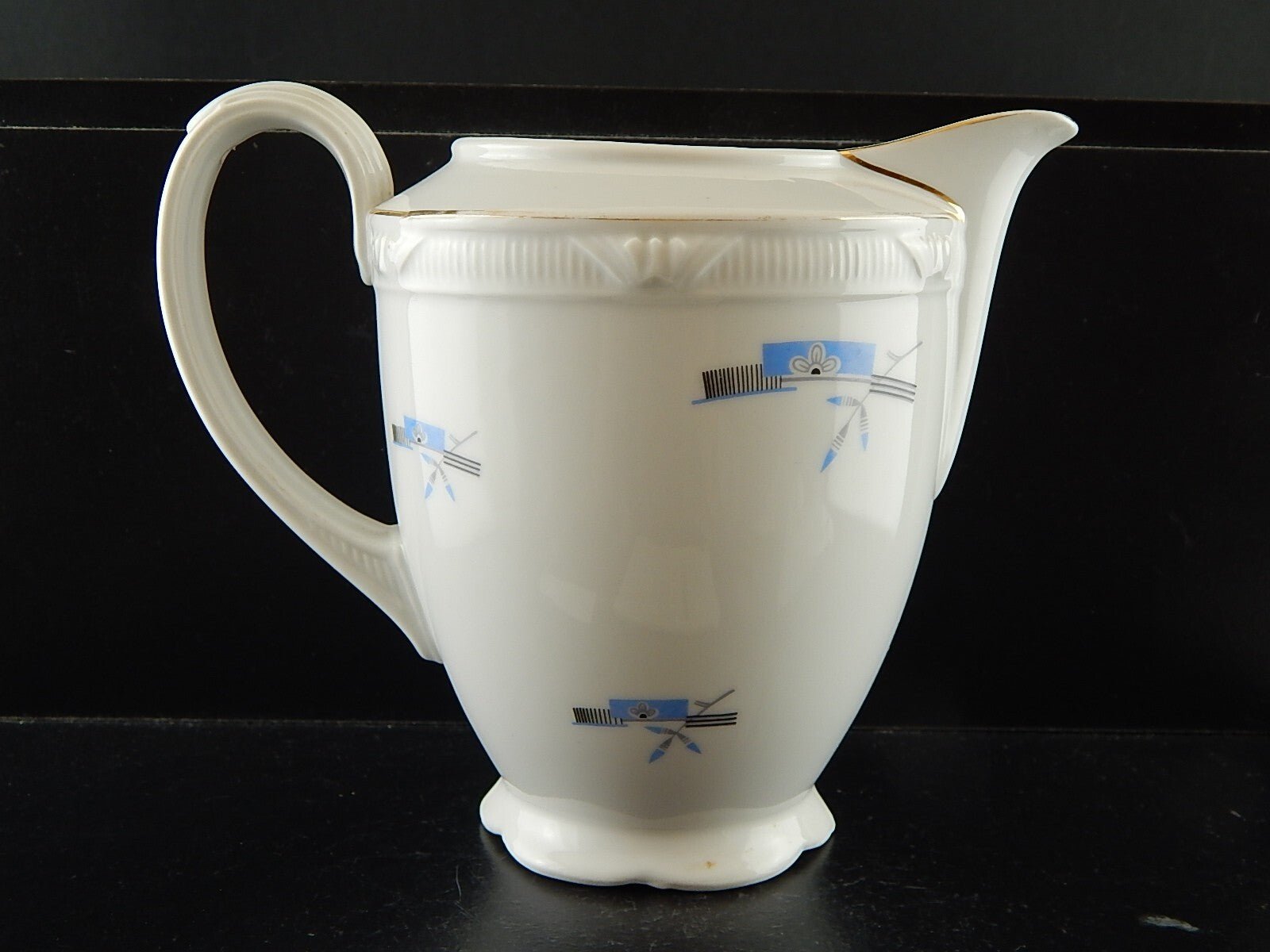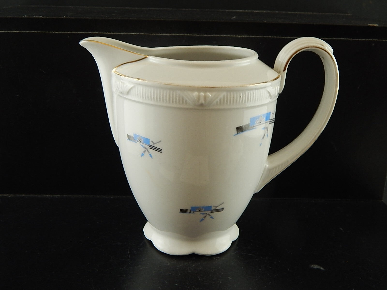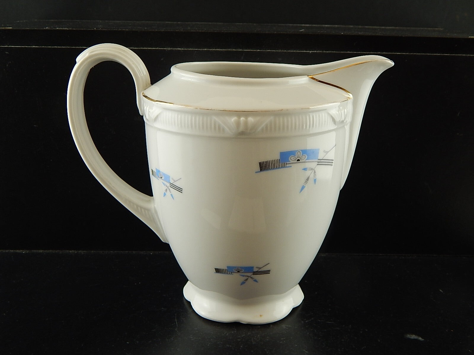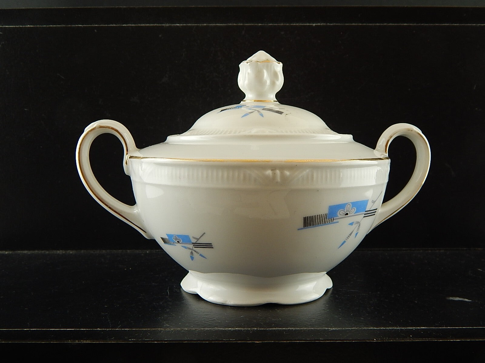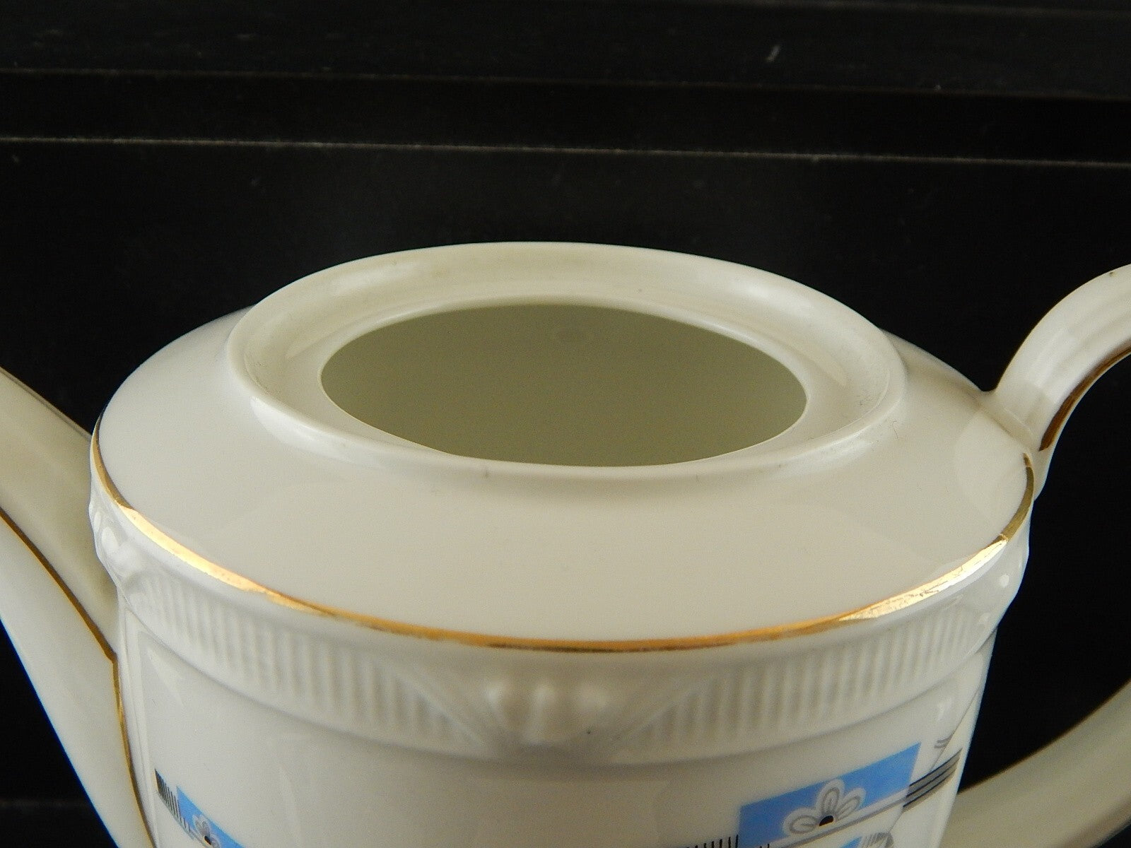 In questa inserzione viene presentato un servizio da tè Art Decò realizzato in porcellana di altissima qualità decorato in azzurro e nero e rifinito a mano in oro zecchino dalla manifattura tedesca ZEH SCHERZER Bavaria.