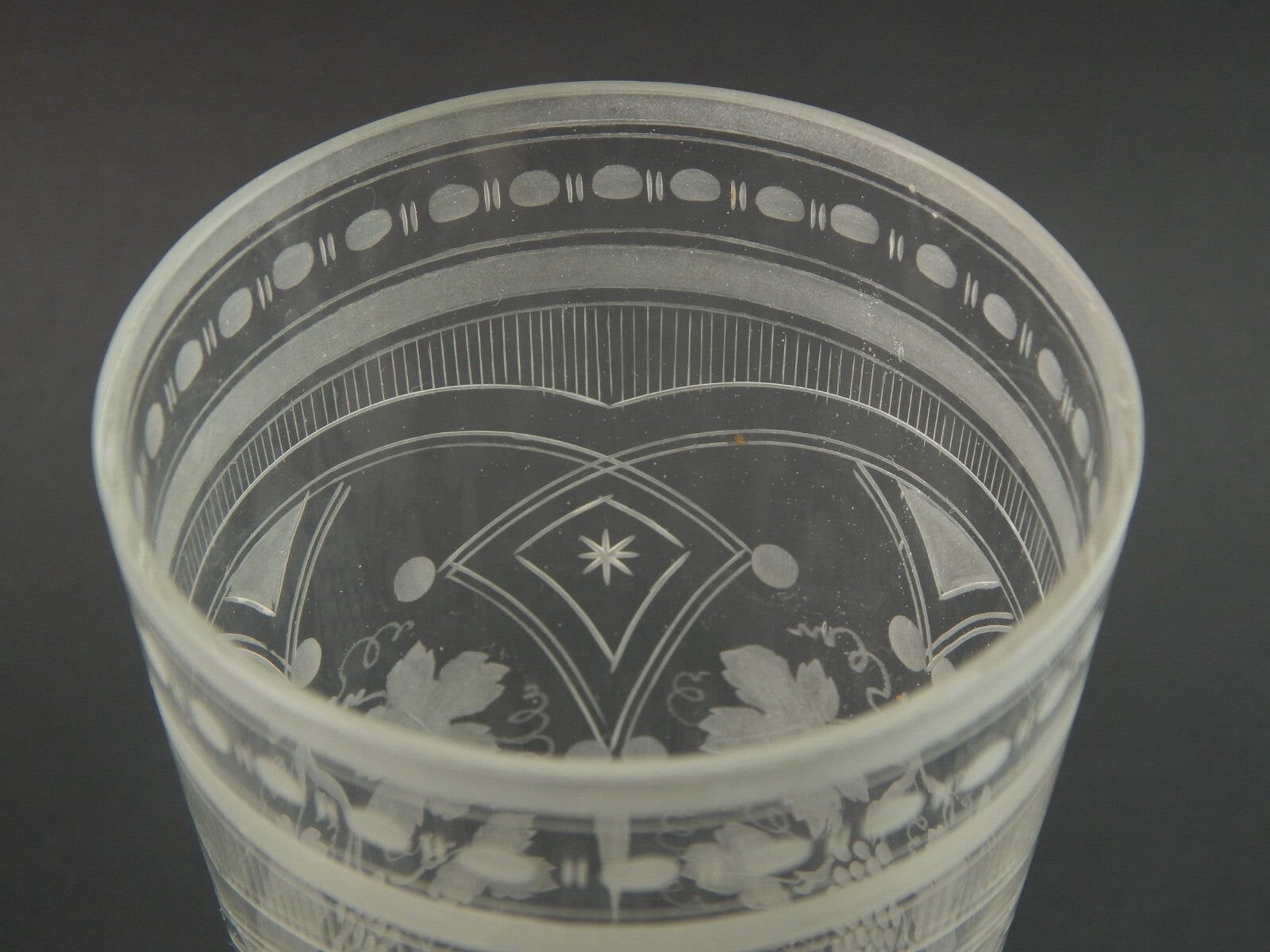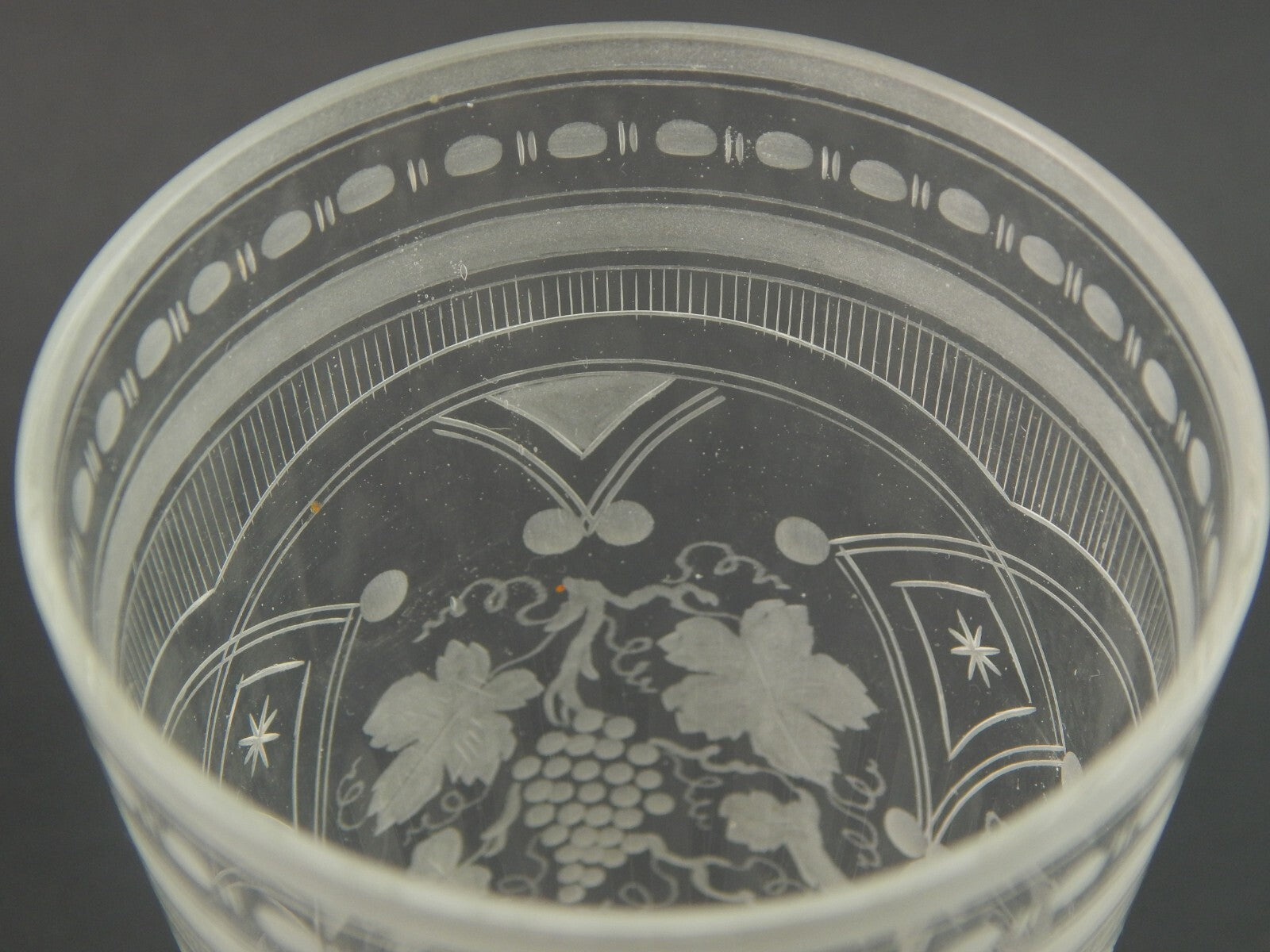 In questa inserzione viene presentato un bicchiere di cristallo di Boemia realizzato secondo le antiche tecniche usate dalle maestranze delle più importanti cristallerie europee decorato con incisioni con punta di diamante.