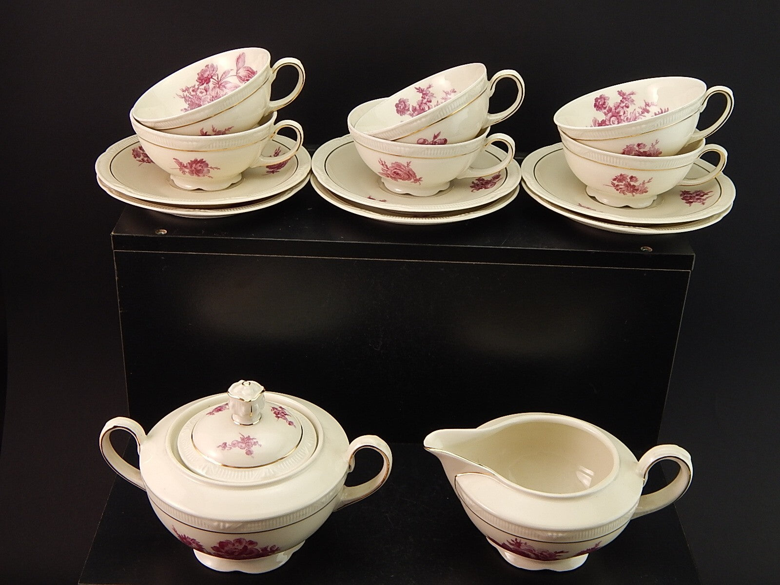 PREZIOSO ANTICO SERVIZIO TE' PORCELLANA ZEH SCHERZER BAVARIA DECORO ROSA FUCSIA