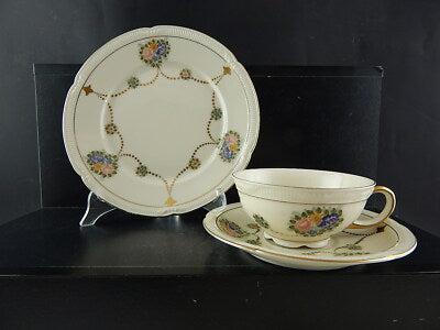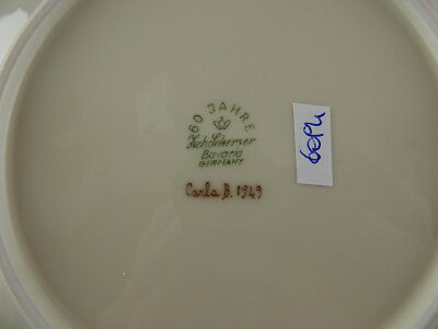 In questa inserzione viene presentato un trio composto da una tazza da tè con relativo piattino e piatto da dessert realizzato in porcellana dalla manifattura tedesca ZEH SCHERZER, il trio è stato decorato a mano nel 1948 o 49 e firmato sul retro dalla pittrice.