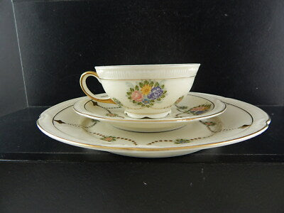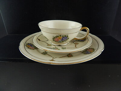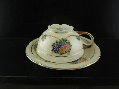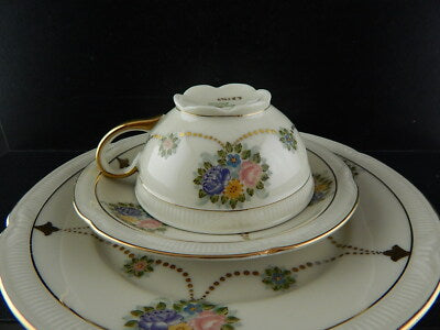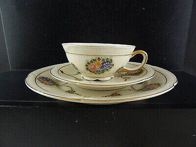 PREZIOSO RARO ANTICO TRIO TE' PORCELLANA ZEH SCHERZER DIPINTO A MANO 1949