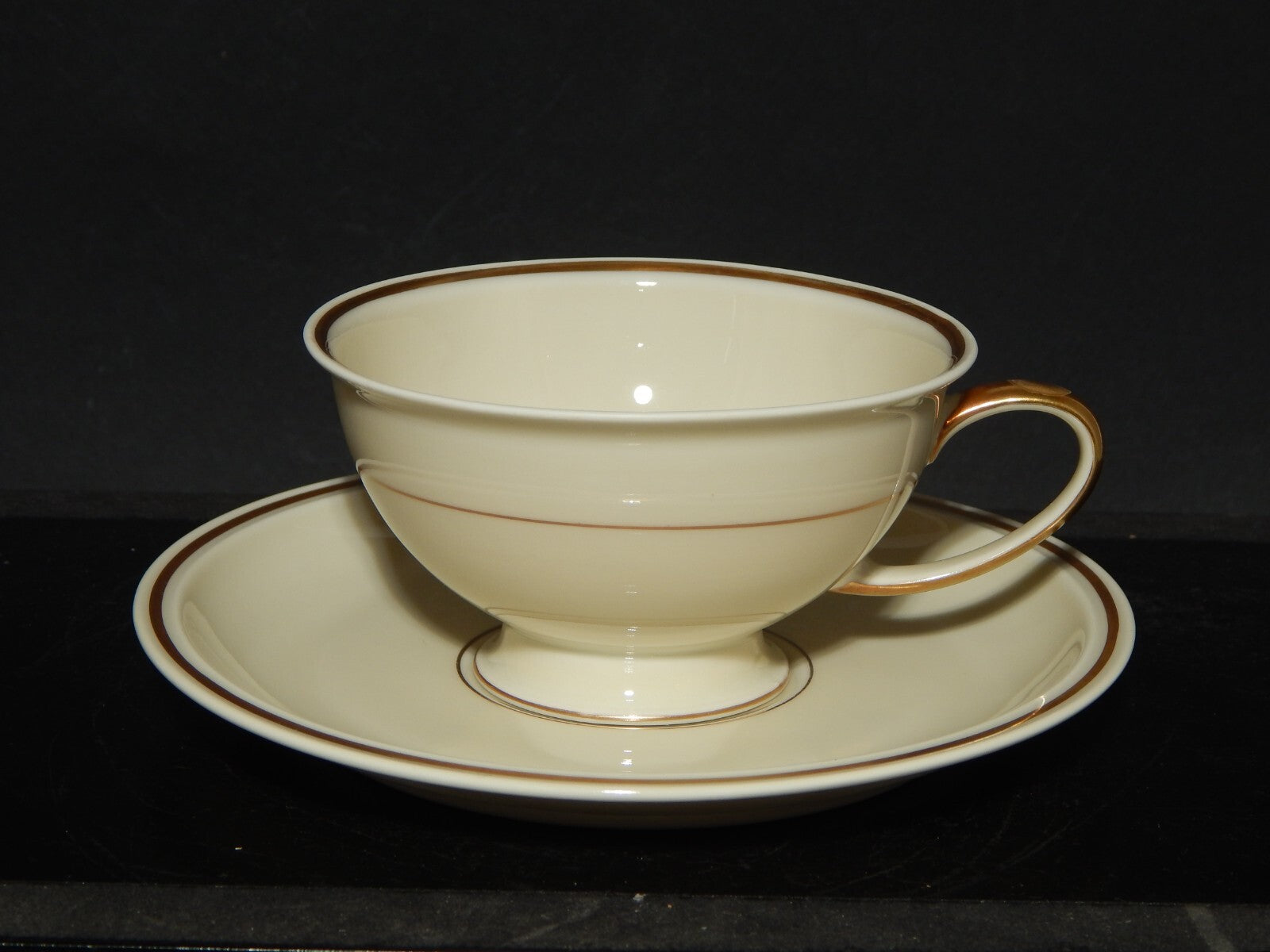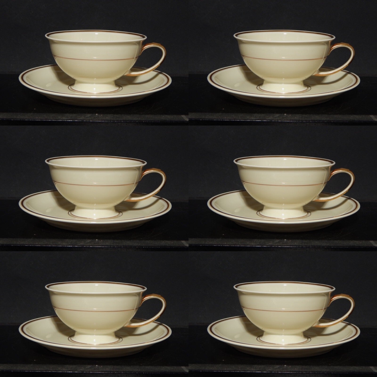 PREZIOSO SERVIZIO 6 TAZZE DA TE' PORCELLANA ROSENTHAL WINIFRED COLOR CREMA ORO