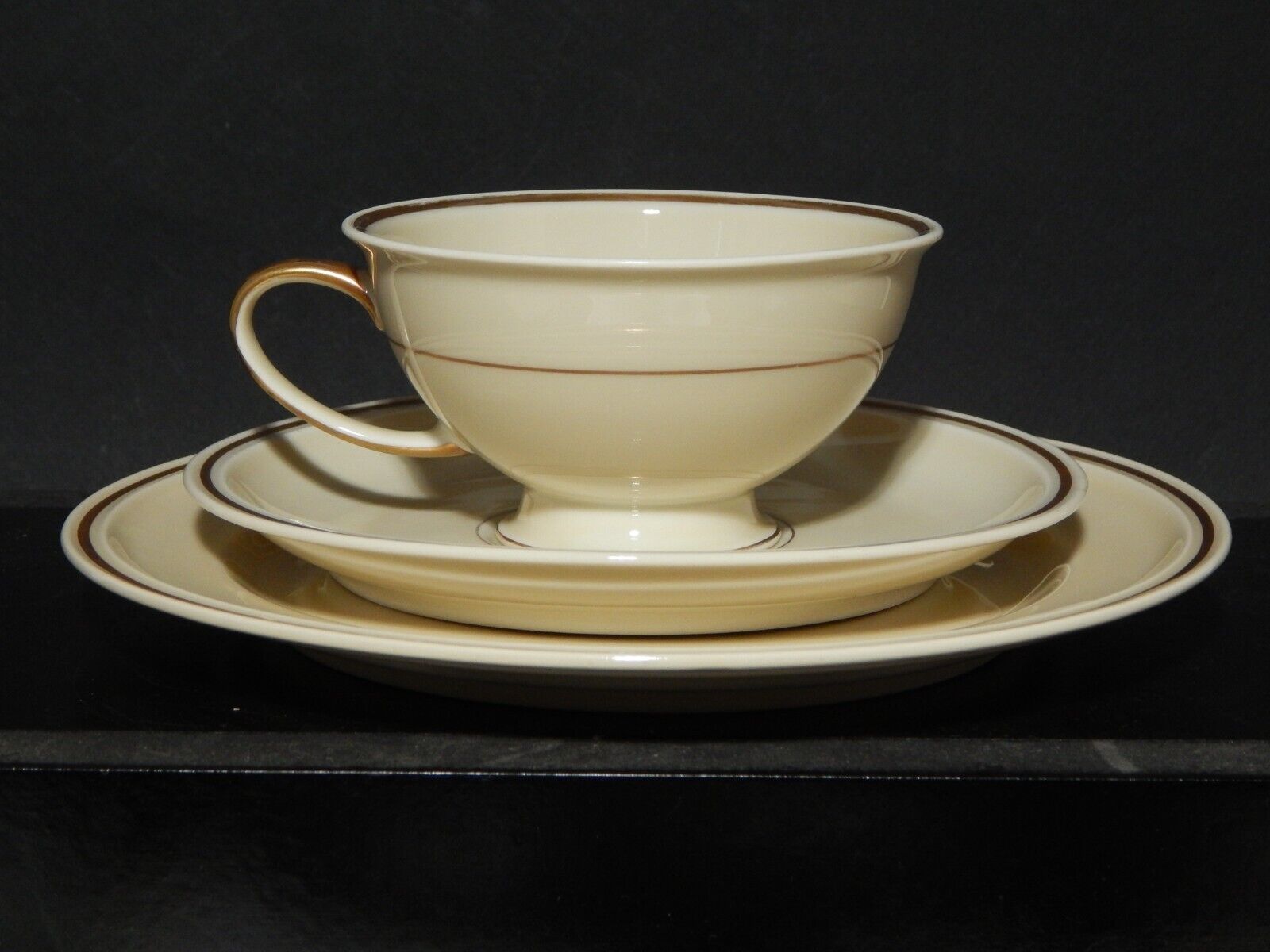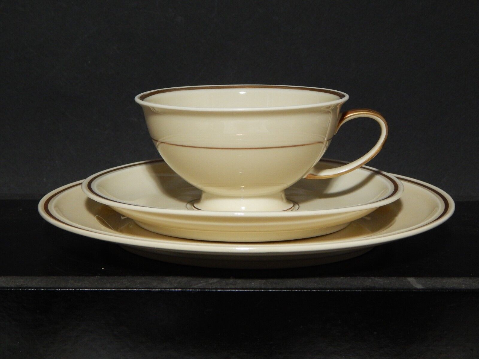PREZIOSO TRIO CON TAZZA DA TE' PORCELLANA ROSENTHAL WINIFRED COLOR CREMA ORO