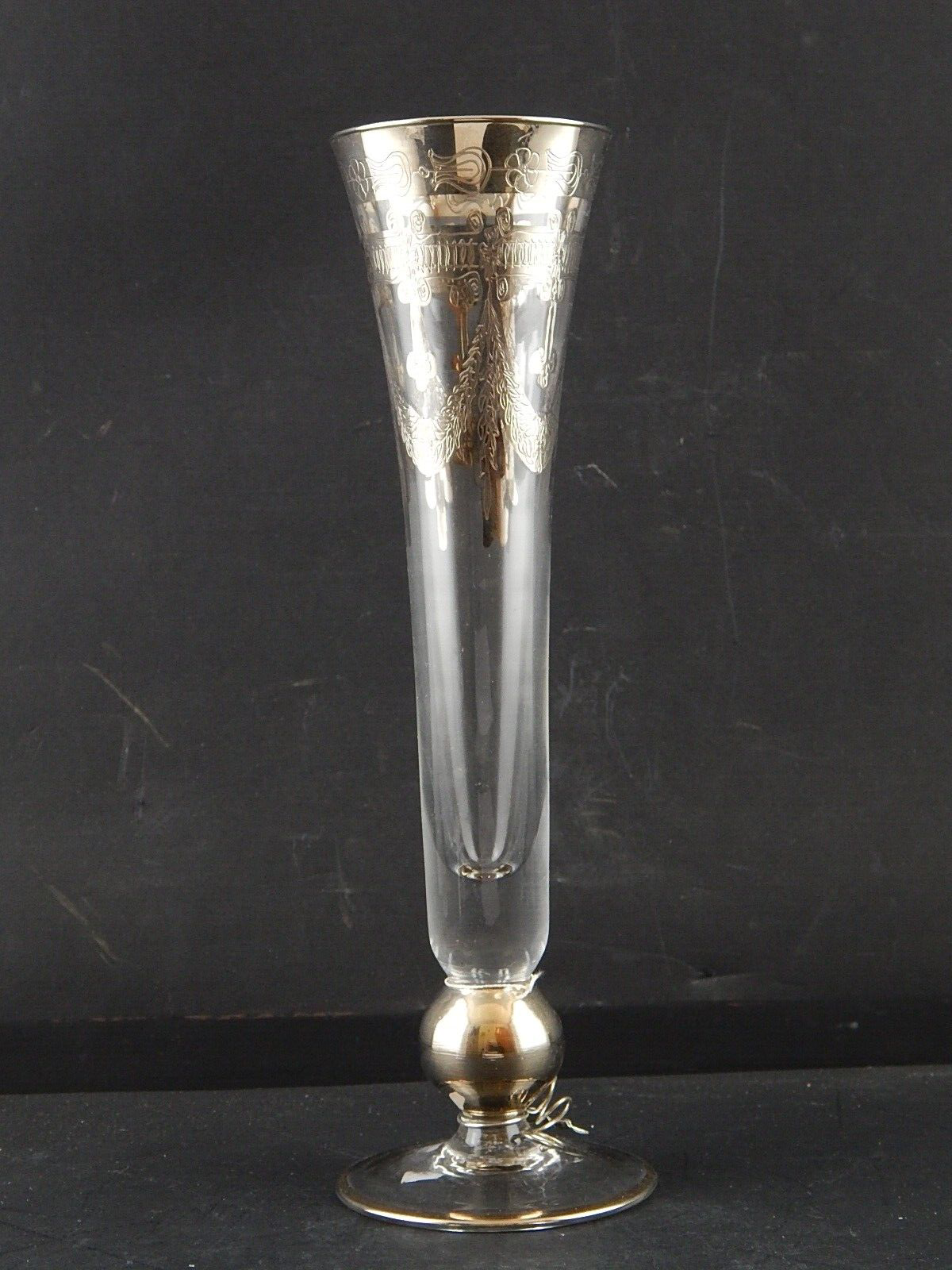PREZIOSO VETRO D'ARTE MURANO VASO A FLUTE CON DECORO IN ARGENTO