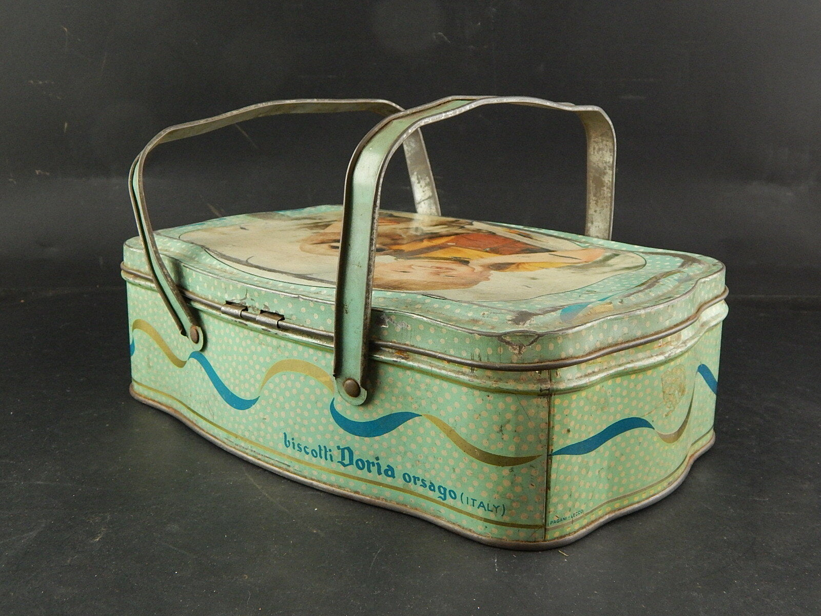 In questa inserzione viene presentata un'antica scatola in latta dei biscotti Doria Orsago