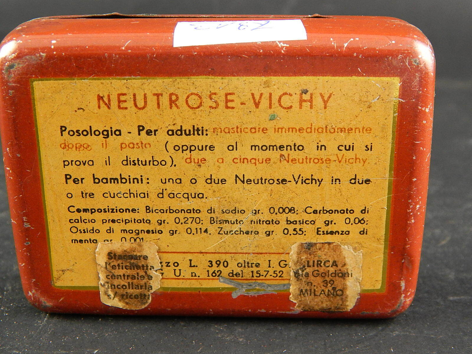 PUBBLICITARIO FARMACIA VINTAGE SCATOLA COMPRESSE NEUTROSE VICHY LIRCA MILANO