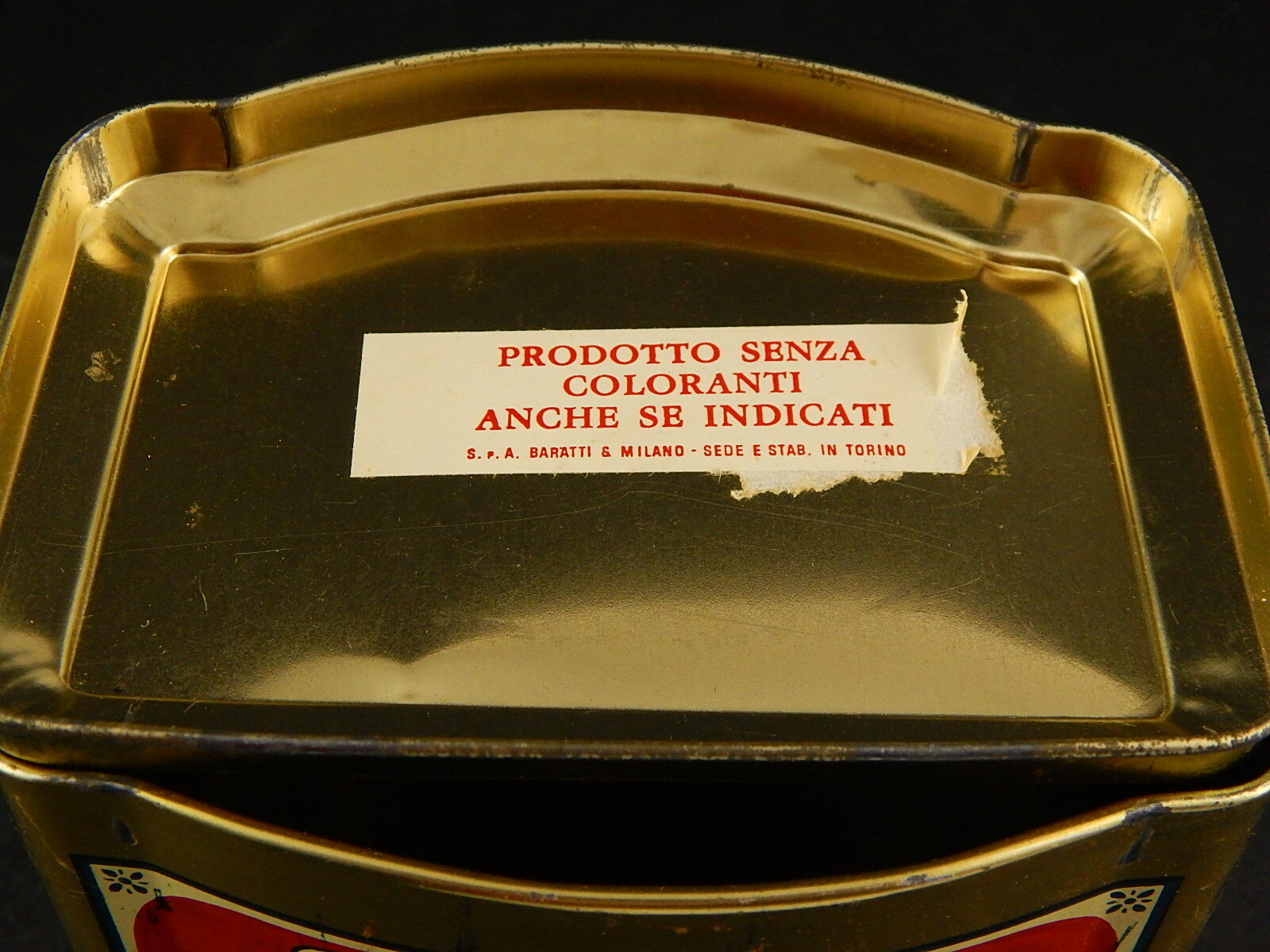 In questa inserzione viene presentata una scatola in latta made in England commercializzata da Baratti