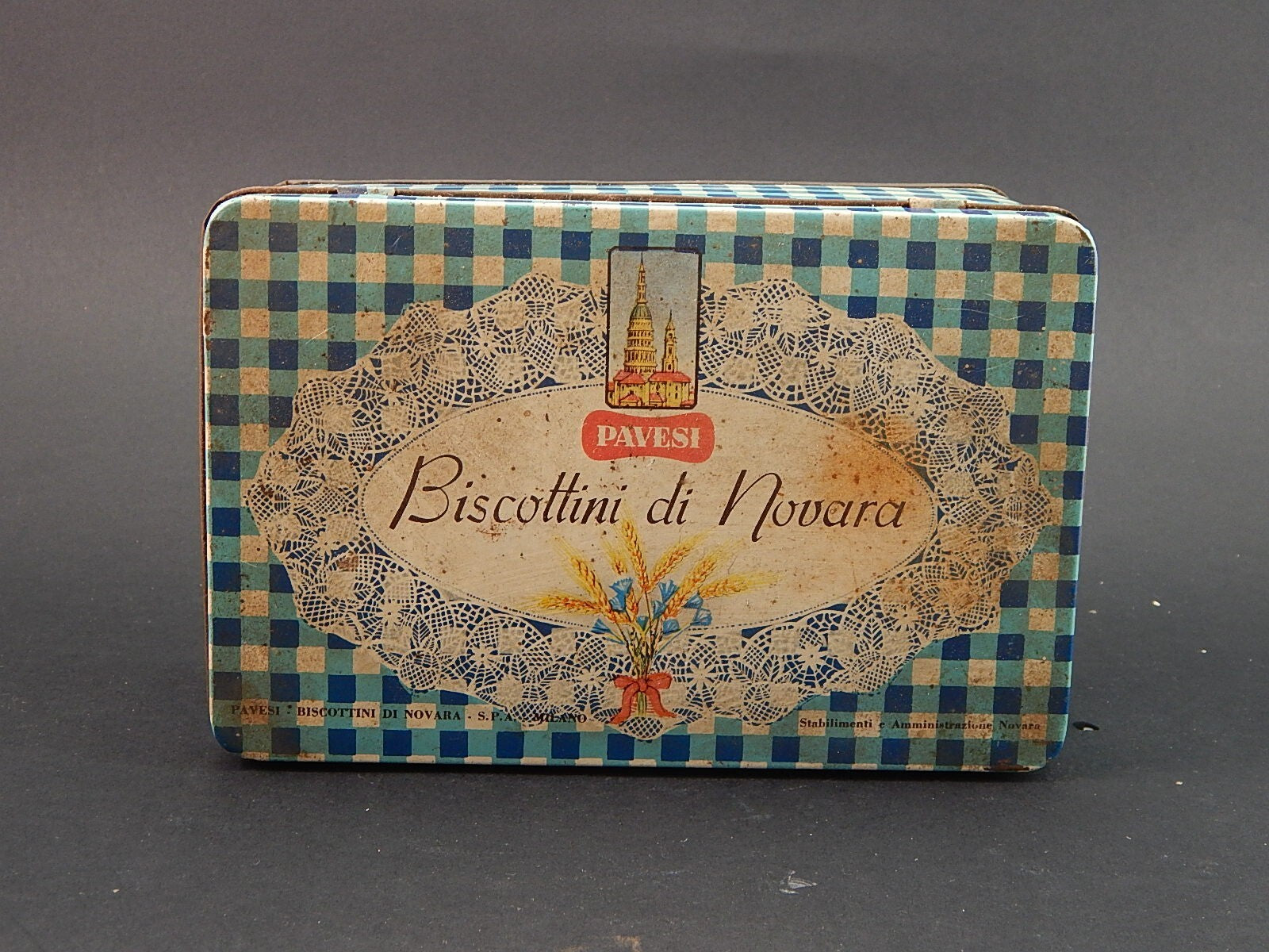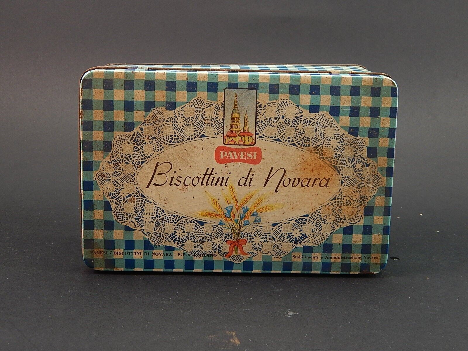 In questa inserzione viene presentata una scatola in latta dei biscottini di Novara Pavesi