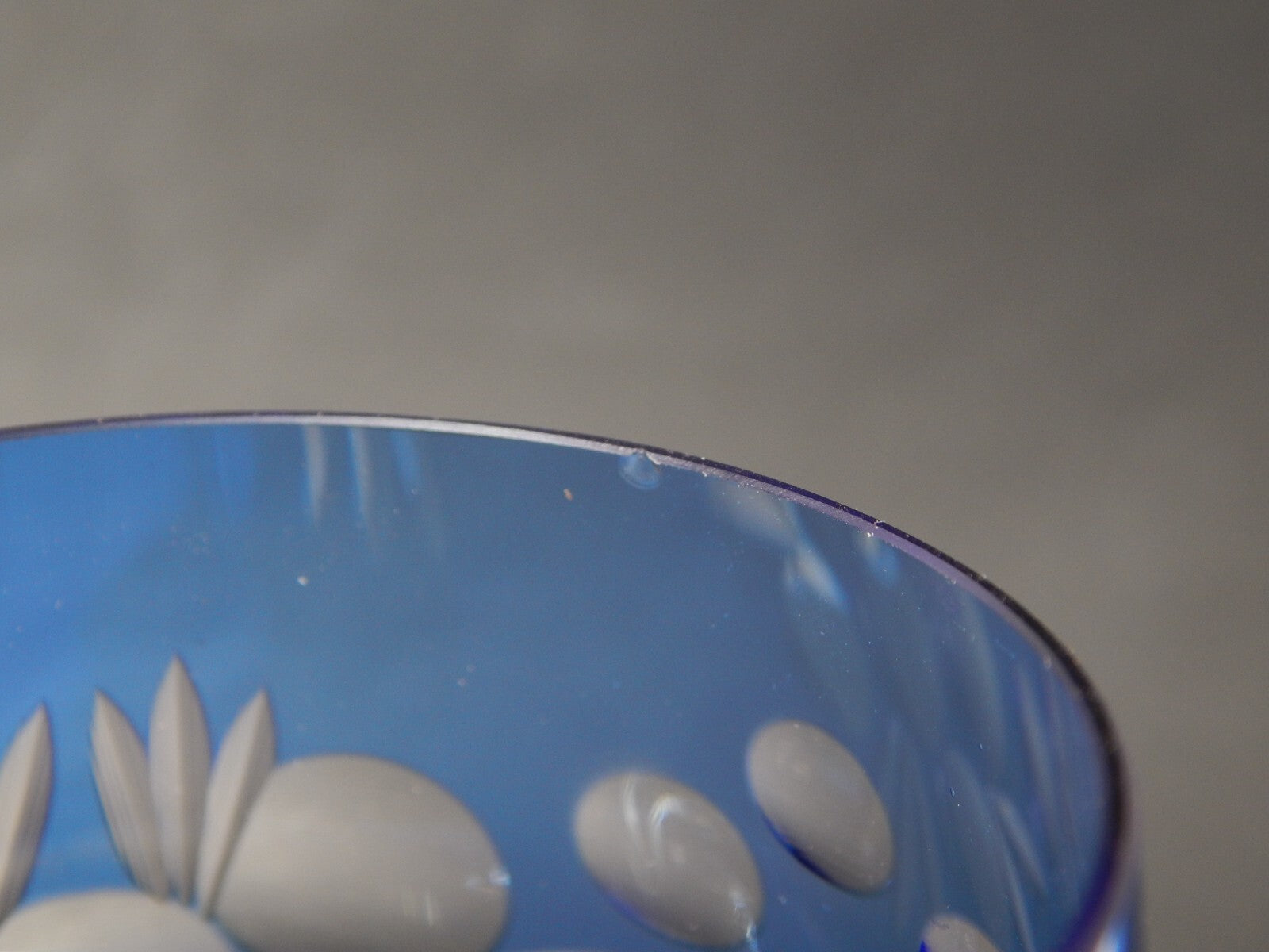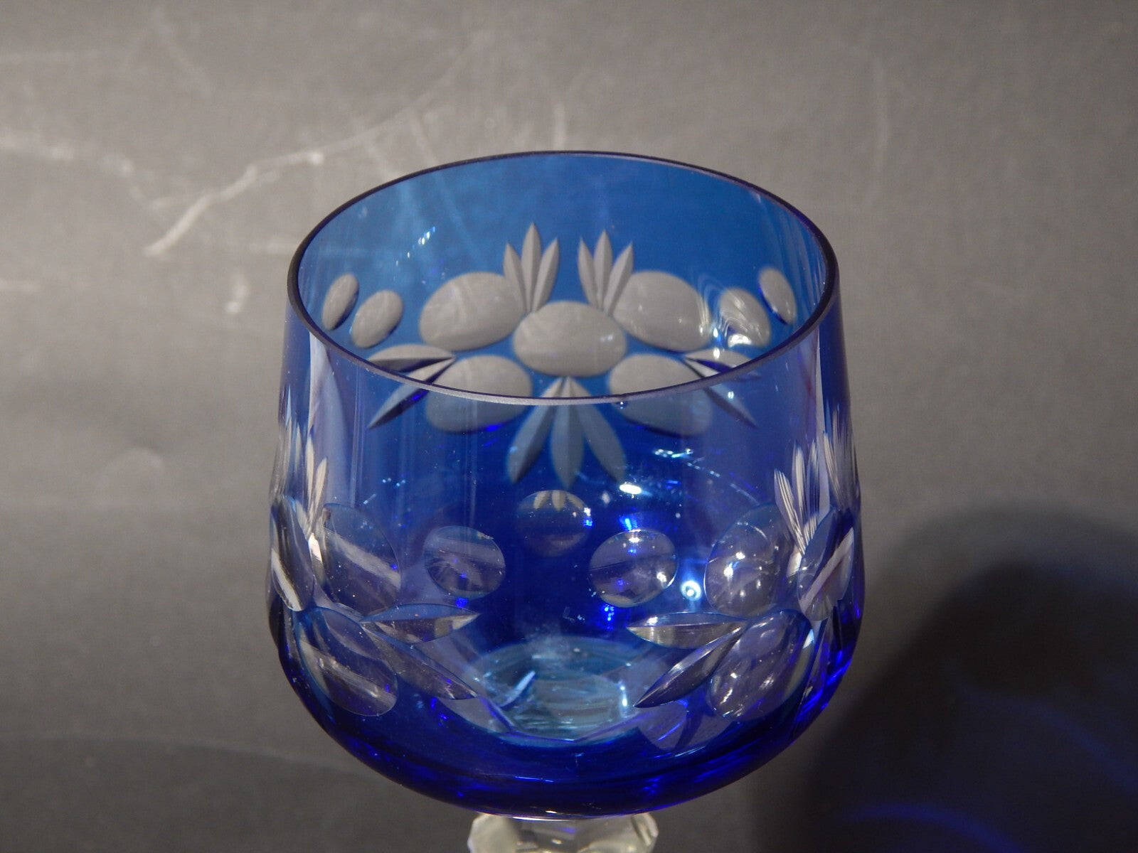 RETRO BICCHIERE CALICE CRISTALLO BOEMIA MOLATO INCISO BLU COBALTO DIFETTO