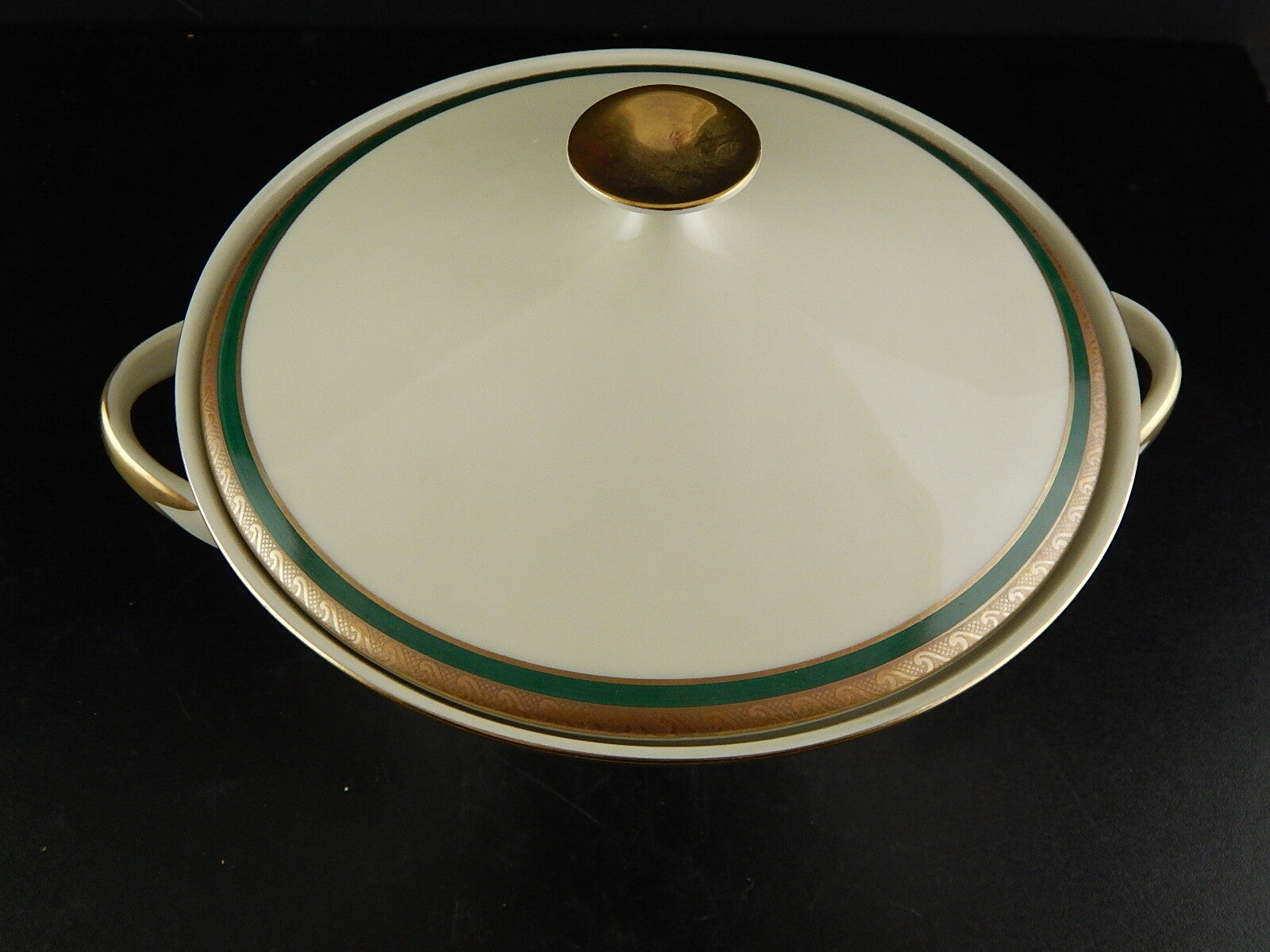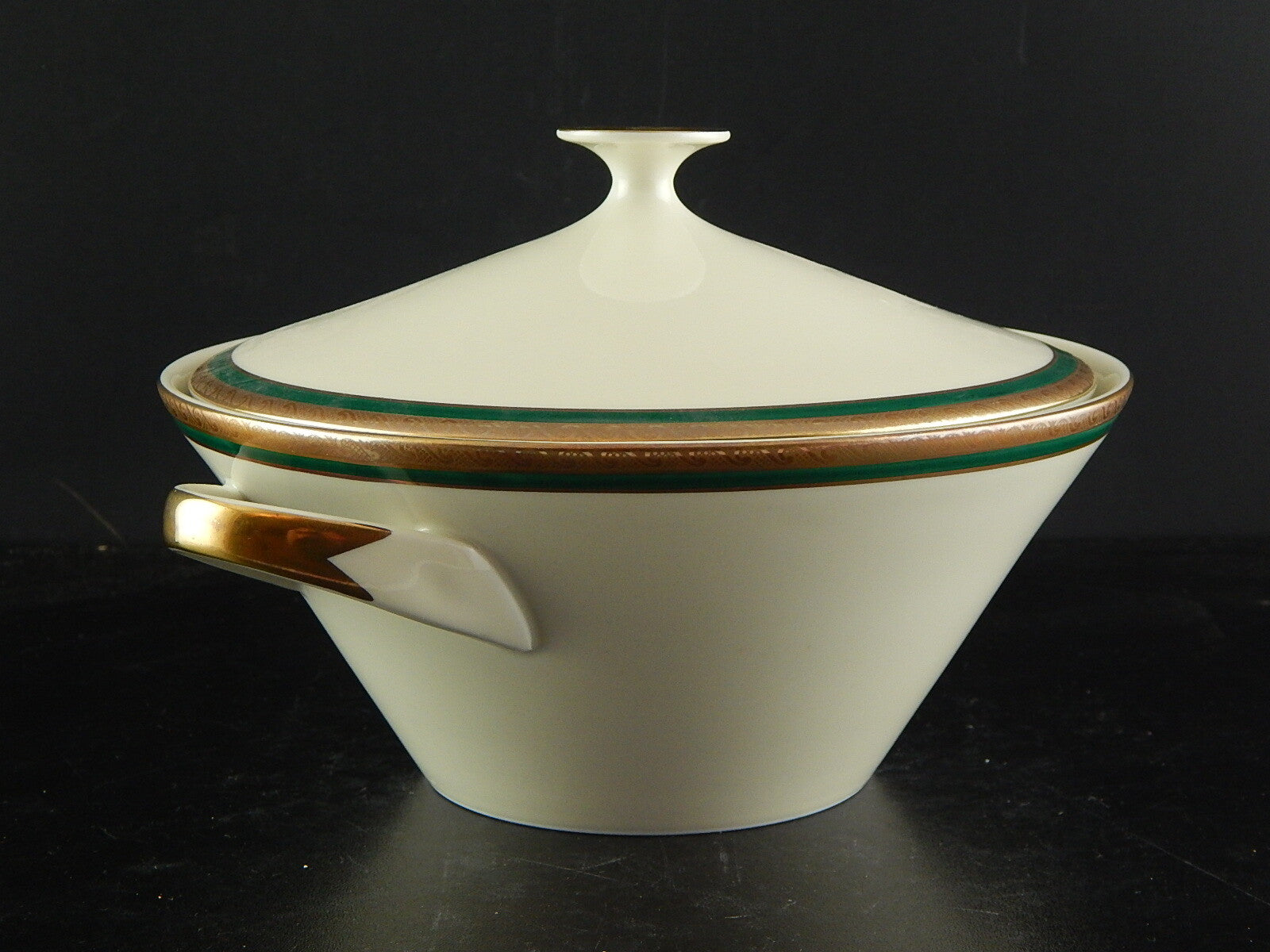 RETRO ELEGANTE PICCOLA ZUPPIERA IMPERO PORCELLANA BAVARIA AVORIO SMERALDO ORO