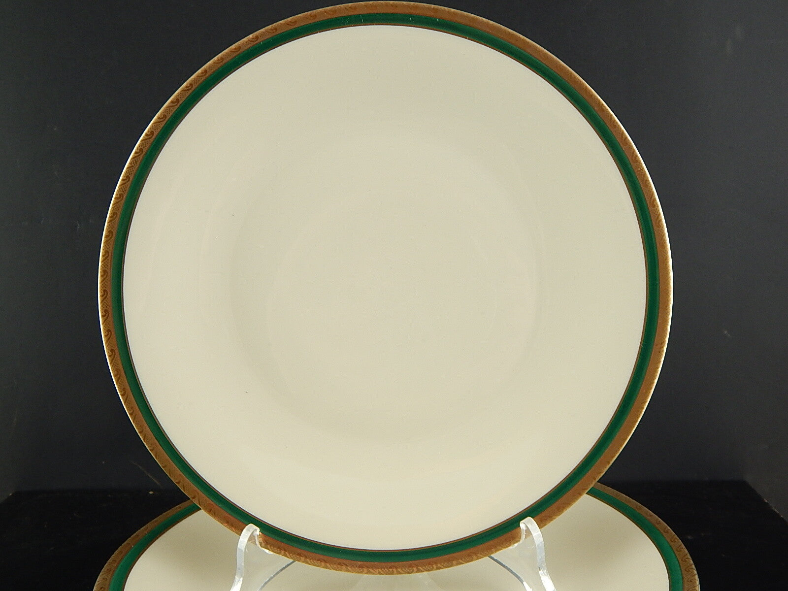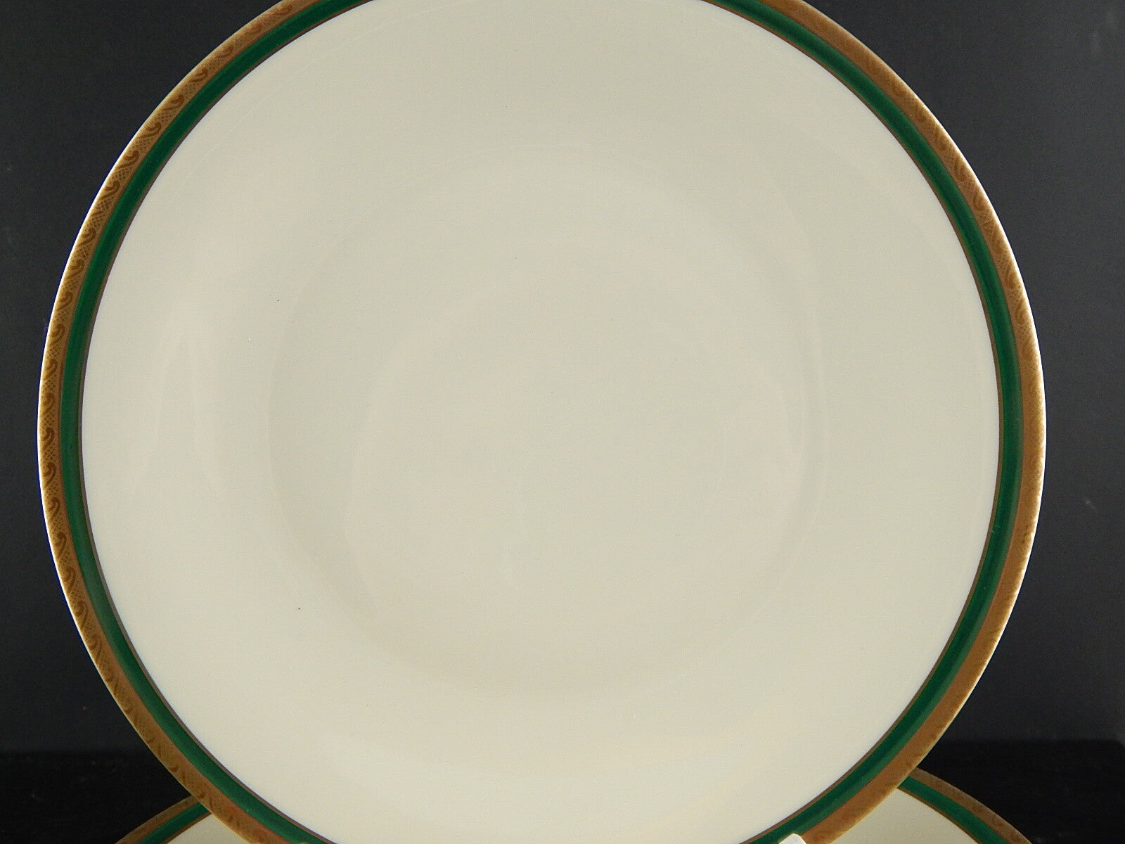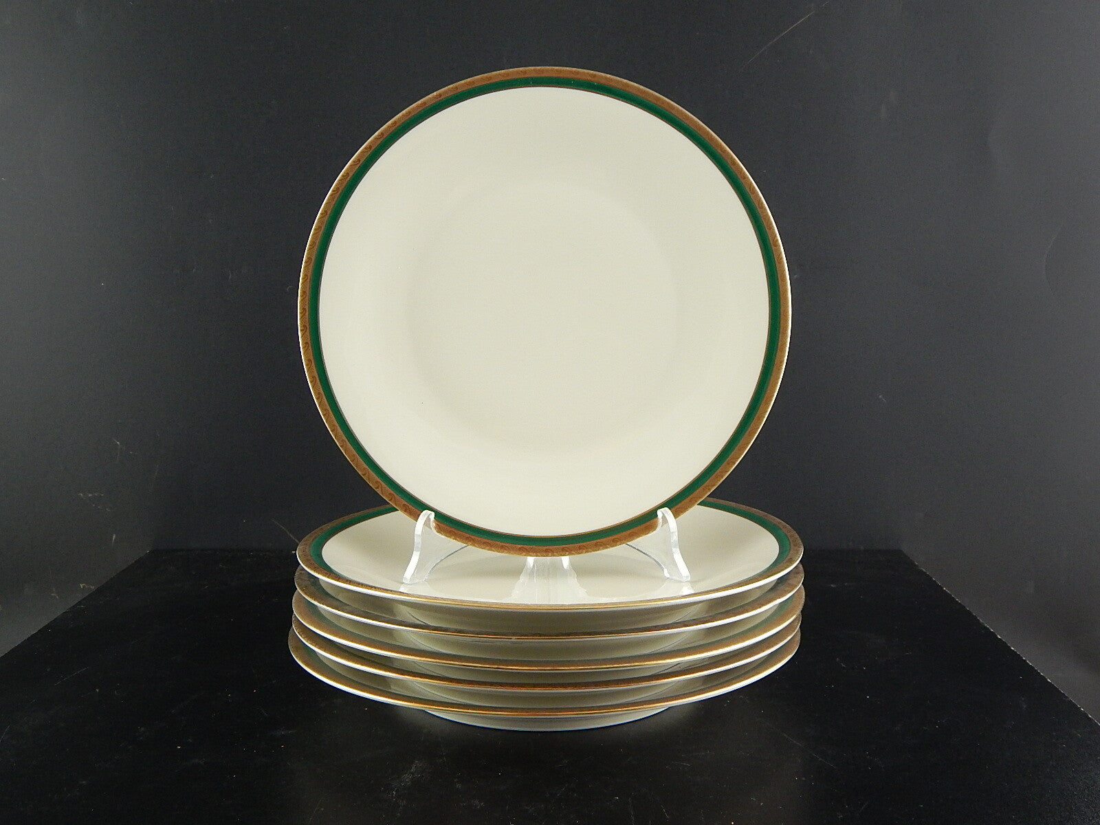 RETRO ELEGANTE SET 6 PIATTI PIANI IMPERO PORCELLANA BAVARIA AVORIO SMERALDO ORO