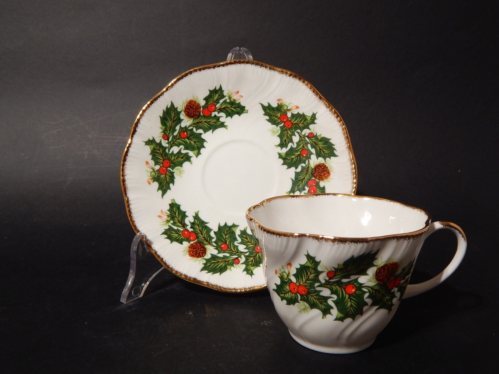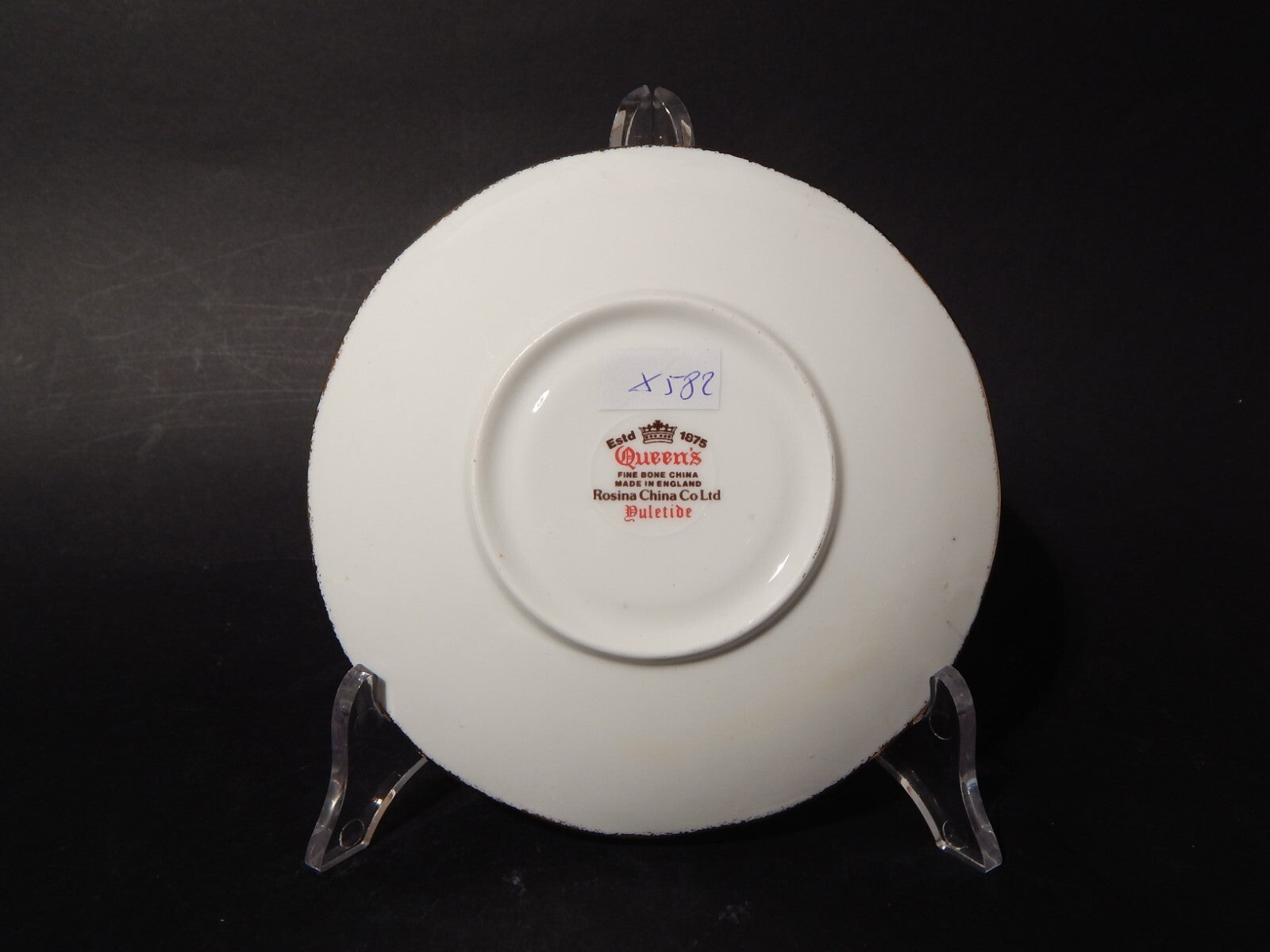 In questa inserzione viene presentata una tazza da Tè con relativo piattino realizzata dalla manifattura inglese Queen's Bone China Rosina nel disegno Juletide
