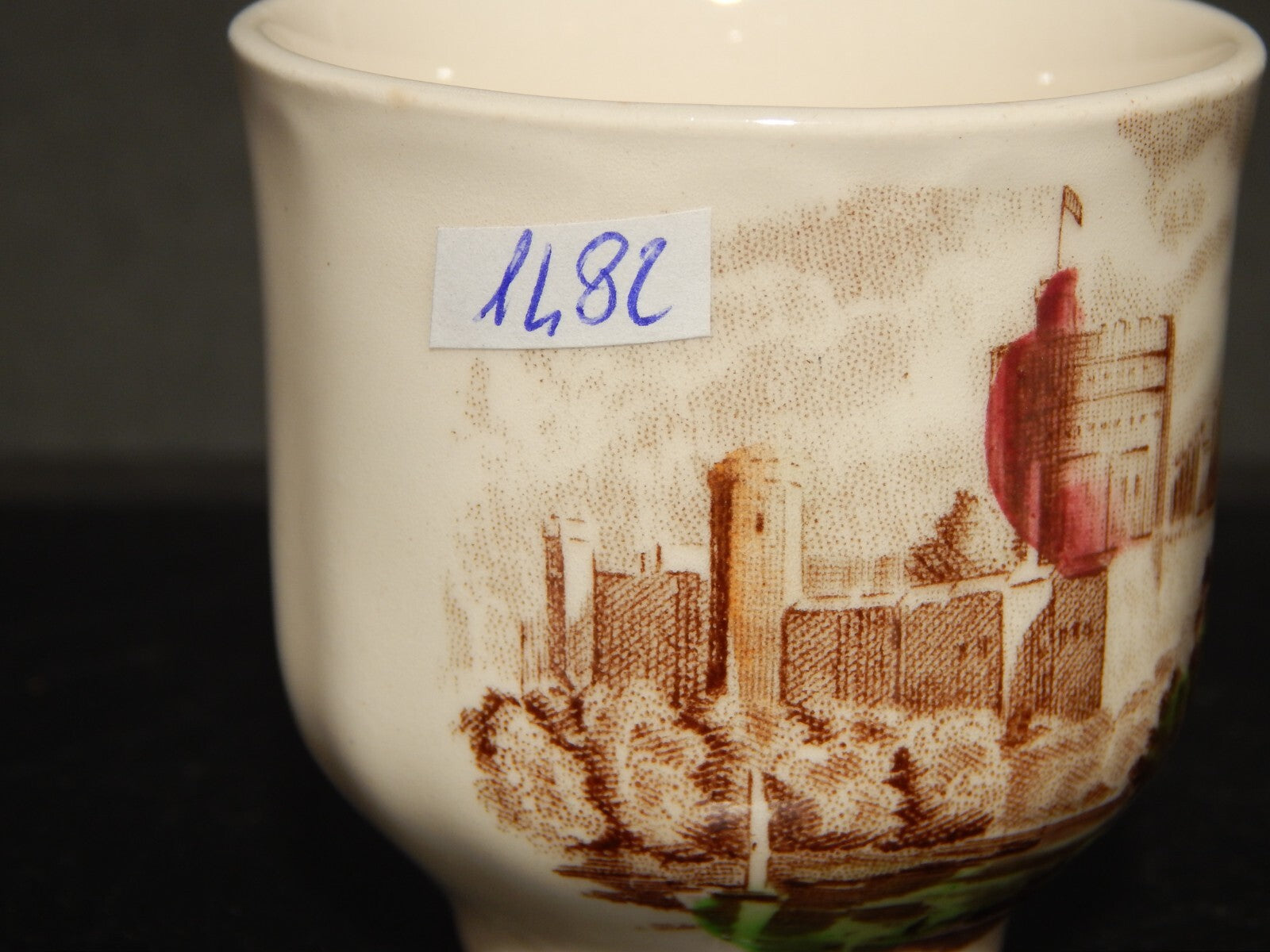 La tazzina stampata a mano, raffigurante Haddon Hall misura 6 cm di diametro e 6 cm di altezza